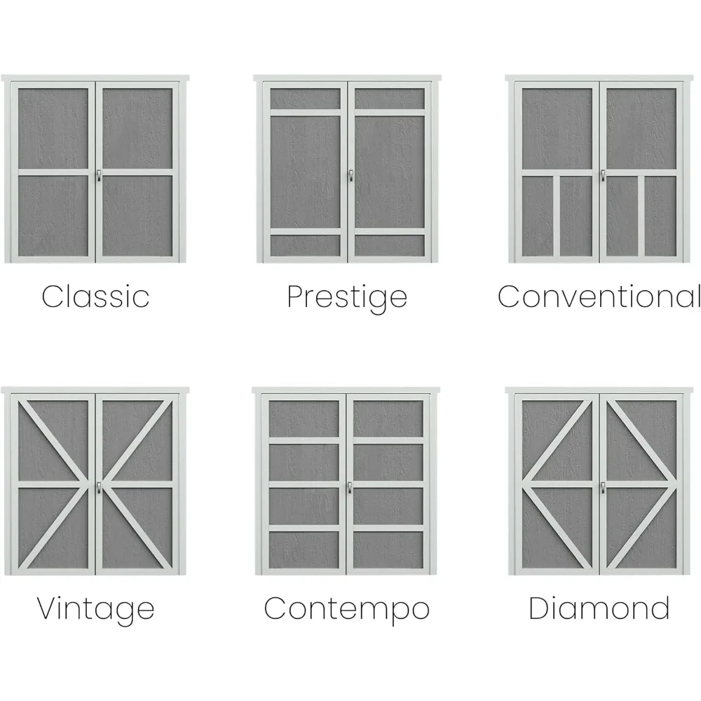 - Extra-large 5′-4″ wide doors feature continuous galvanized steel hinges