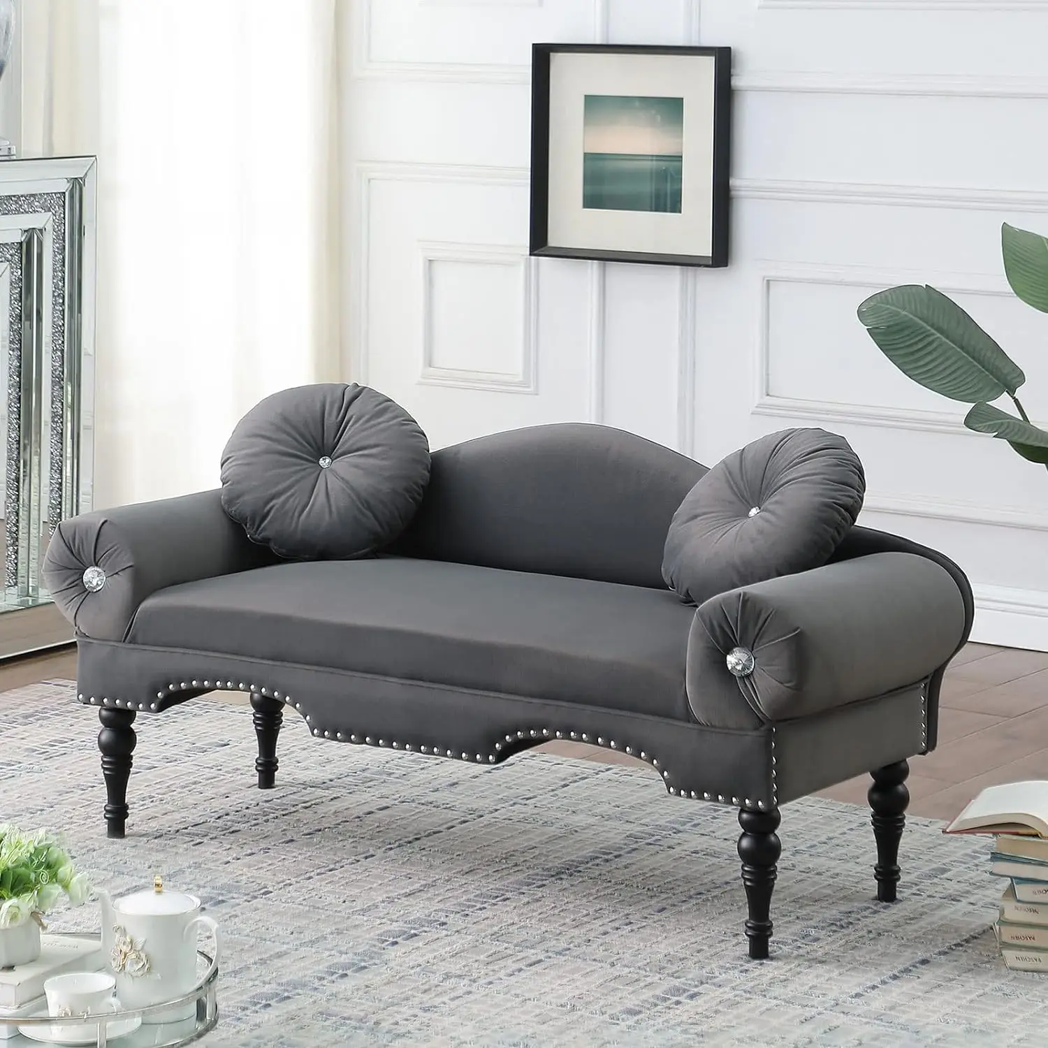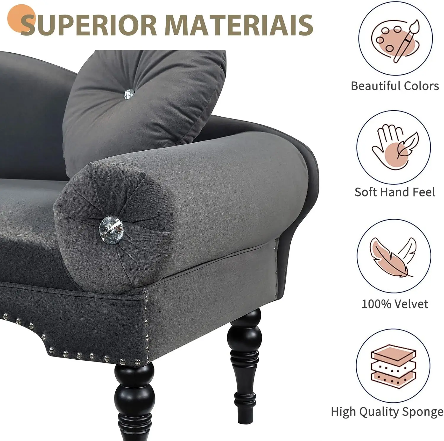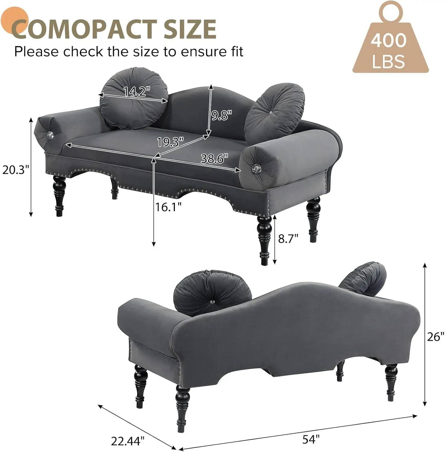 - Stylish Modern Love Seat: The sofa is made of high quality breathable velvet tufting, soft and skin-friendly, with large diamond buckles on the rolling armrests, curved backrests and unique nail head trim bottom edge, making this small sofa look elegant and luxurious from different angles.