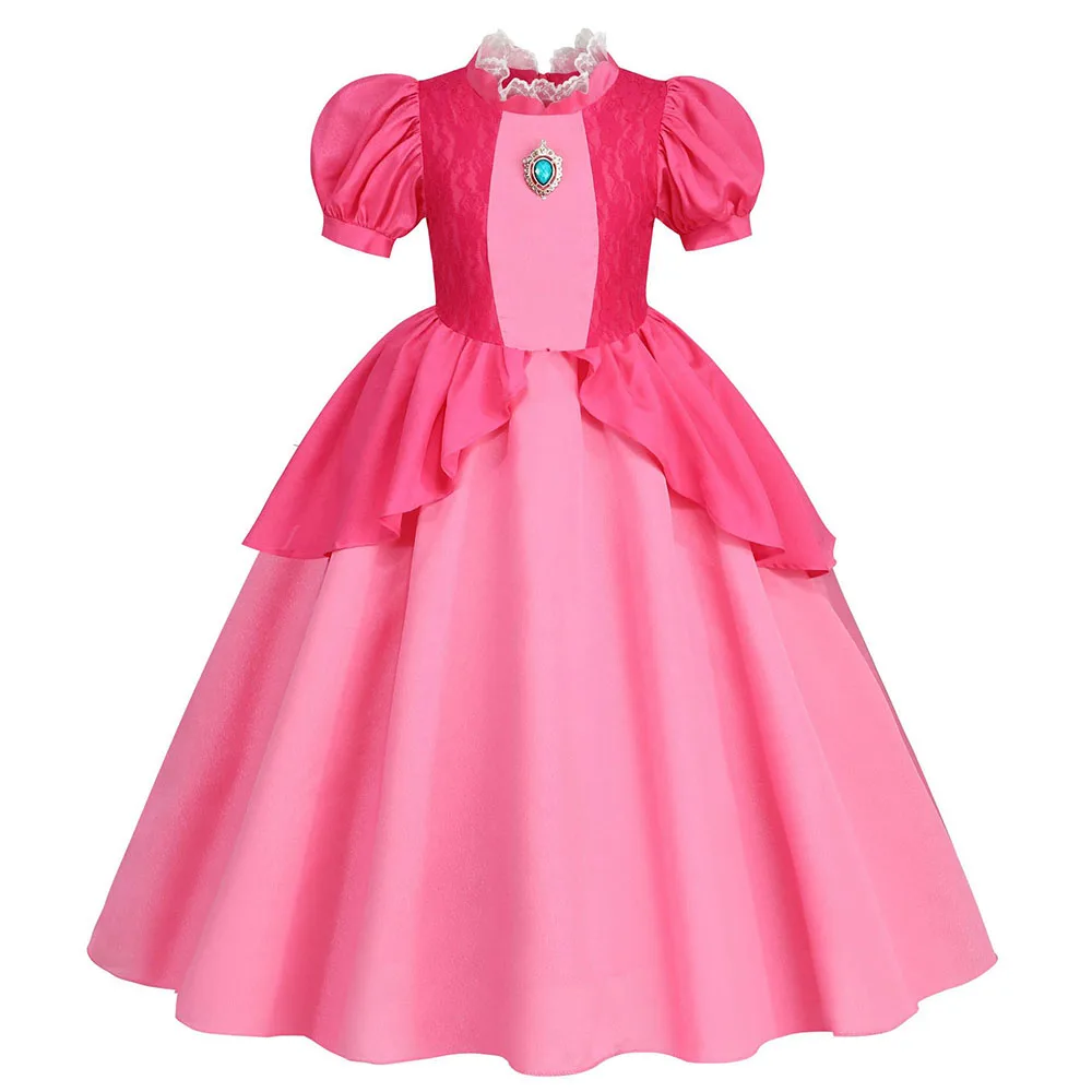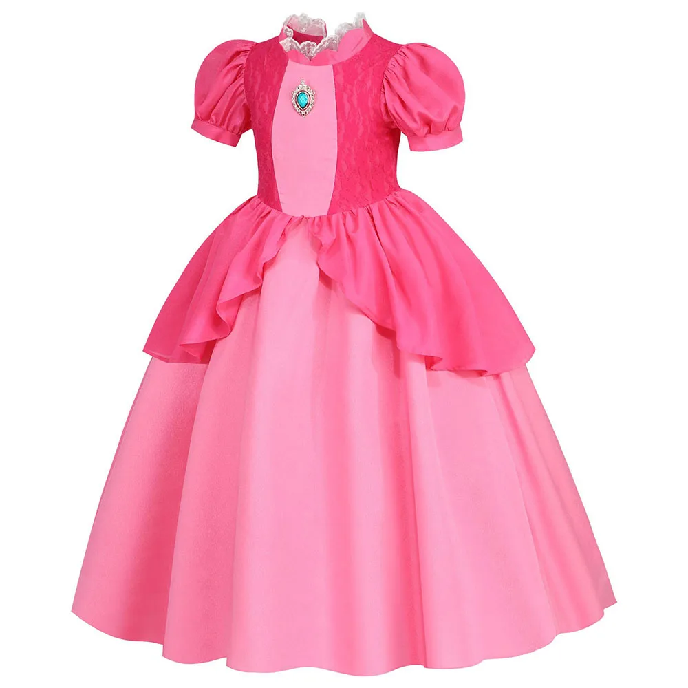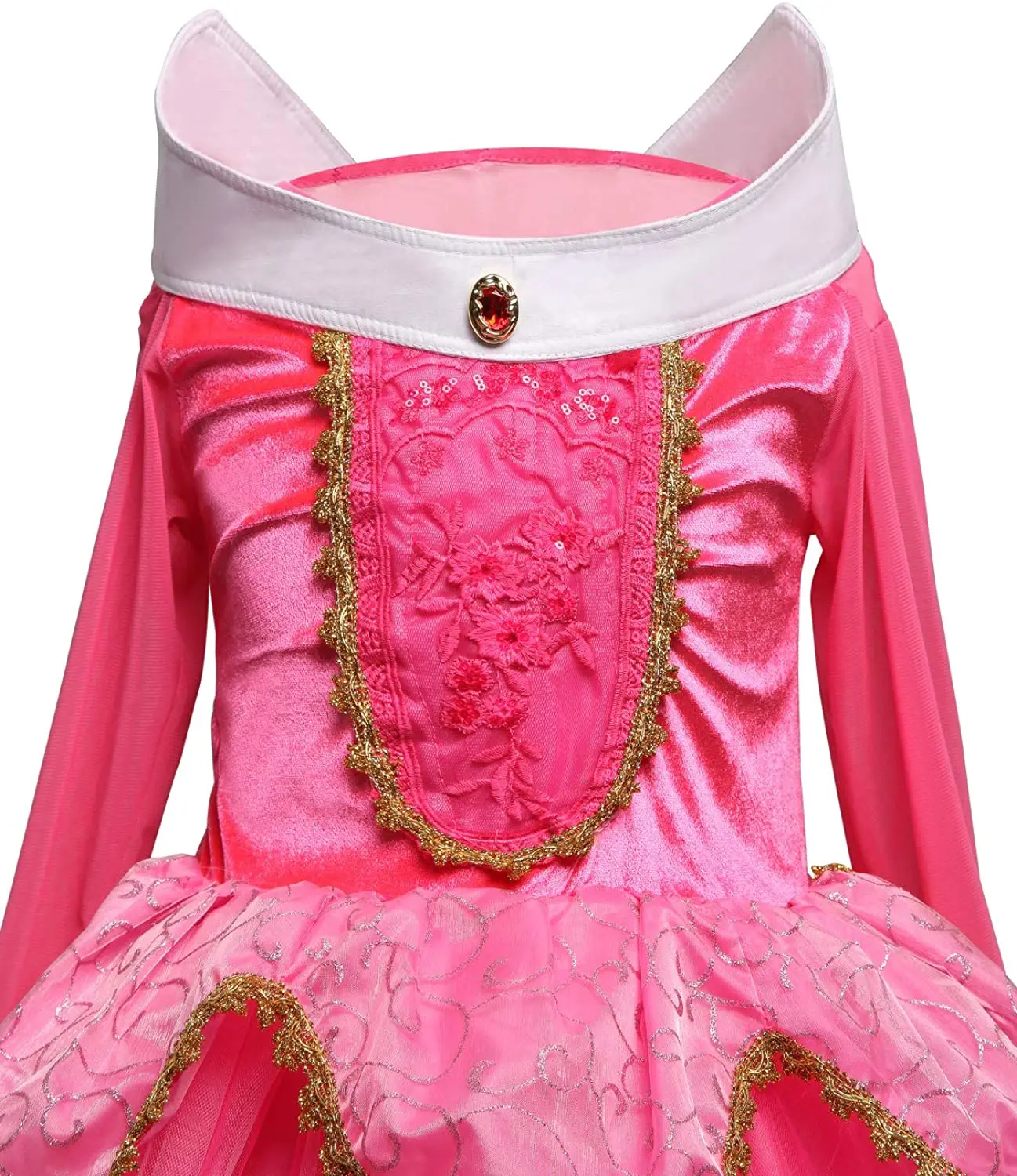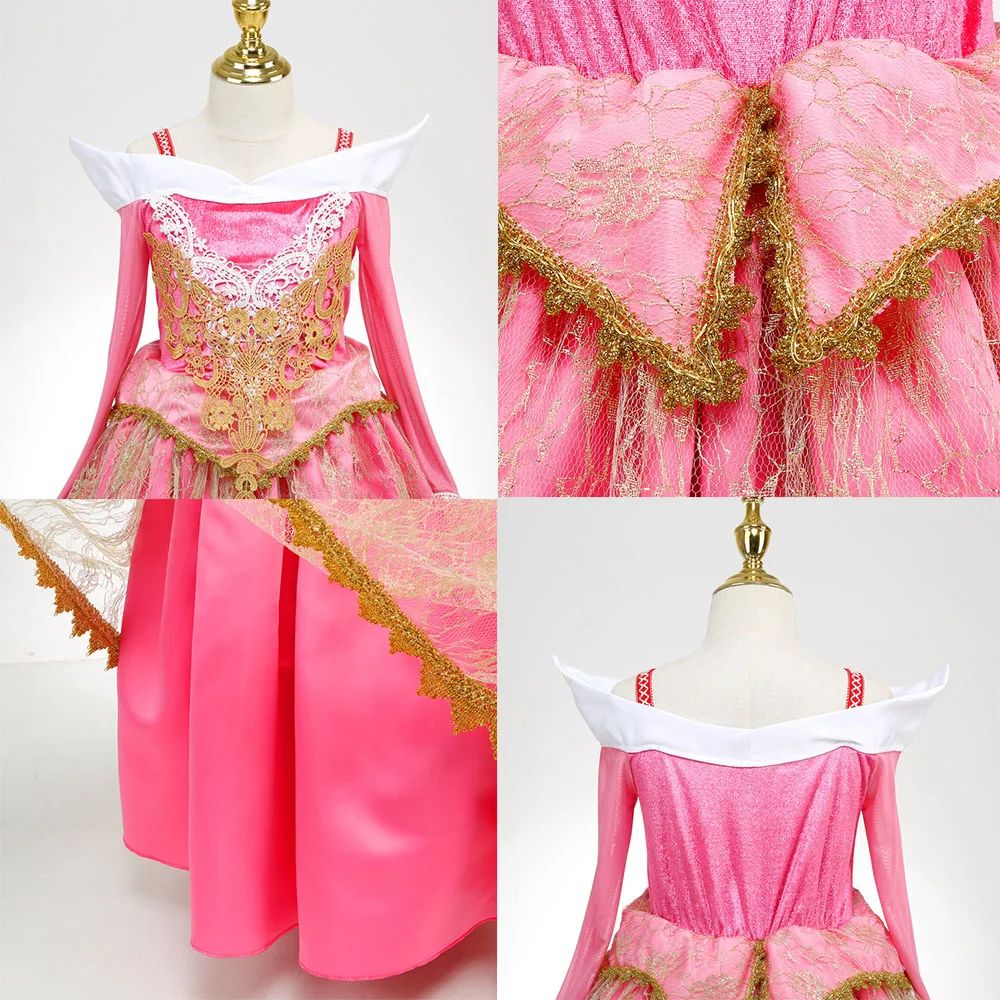 2023 Girls Princess Party Peach Dress Girls Sleeping Beauty Cosplay Costumes Birthday Halloween Vestidos Rapunzel