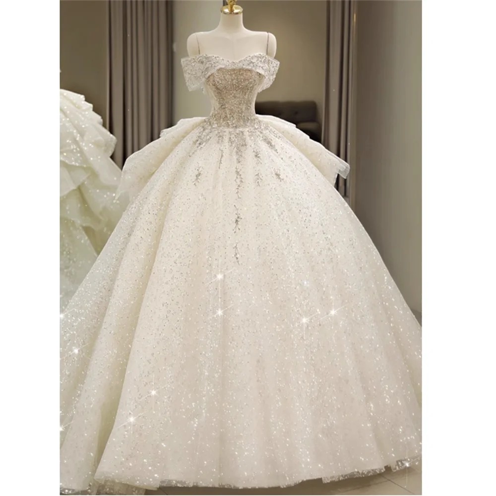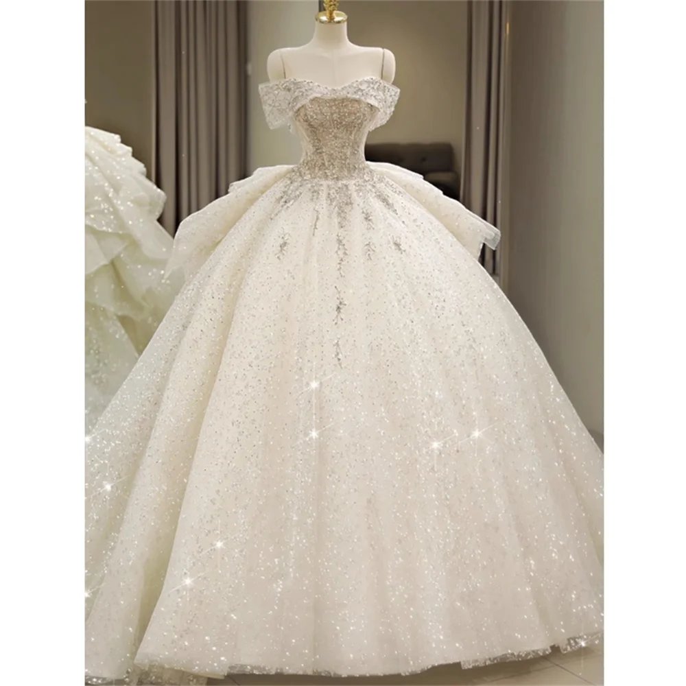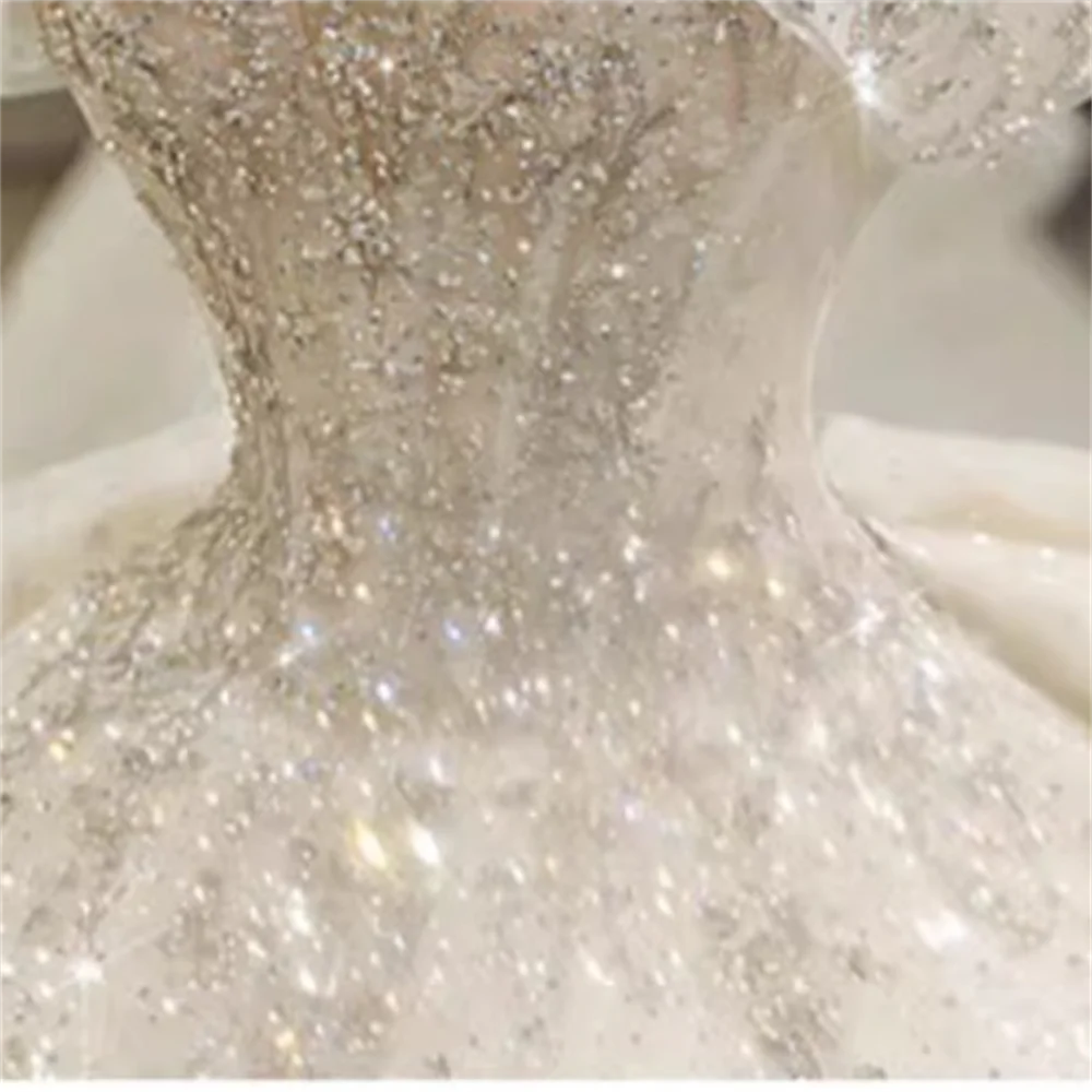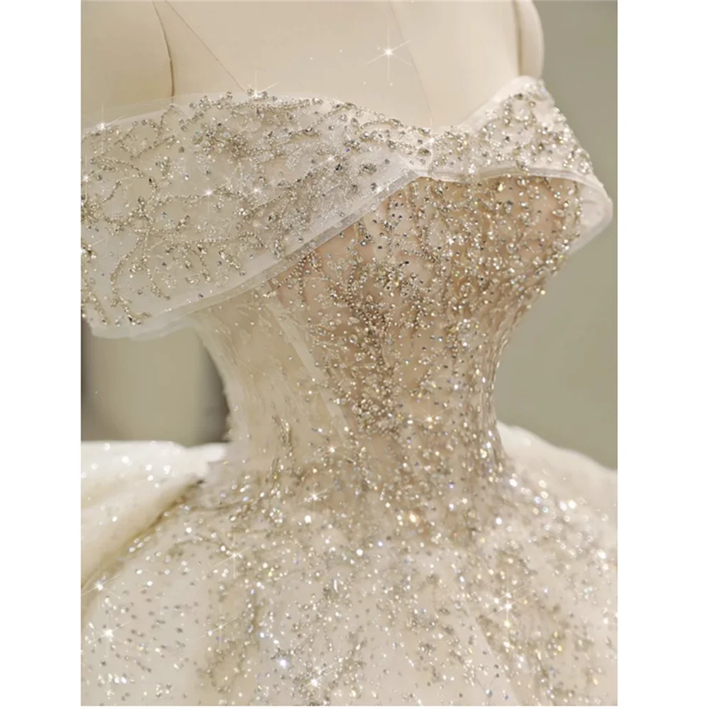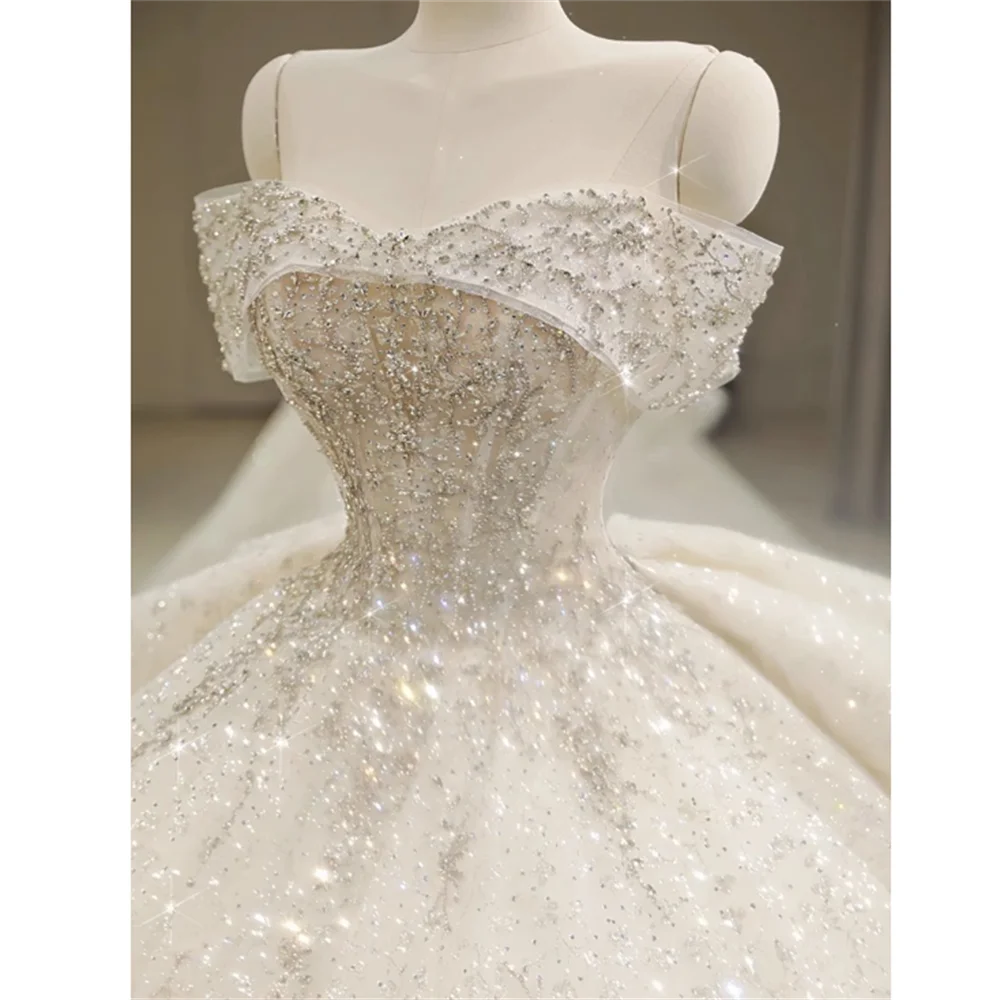 D120 2024 Princess Sexy Luxury Crystal Beaded Wedding Dress Puff Tulle White Wedding Gown Simple Bride Dress Women
