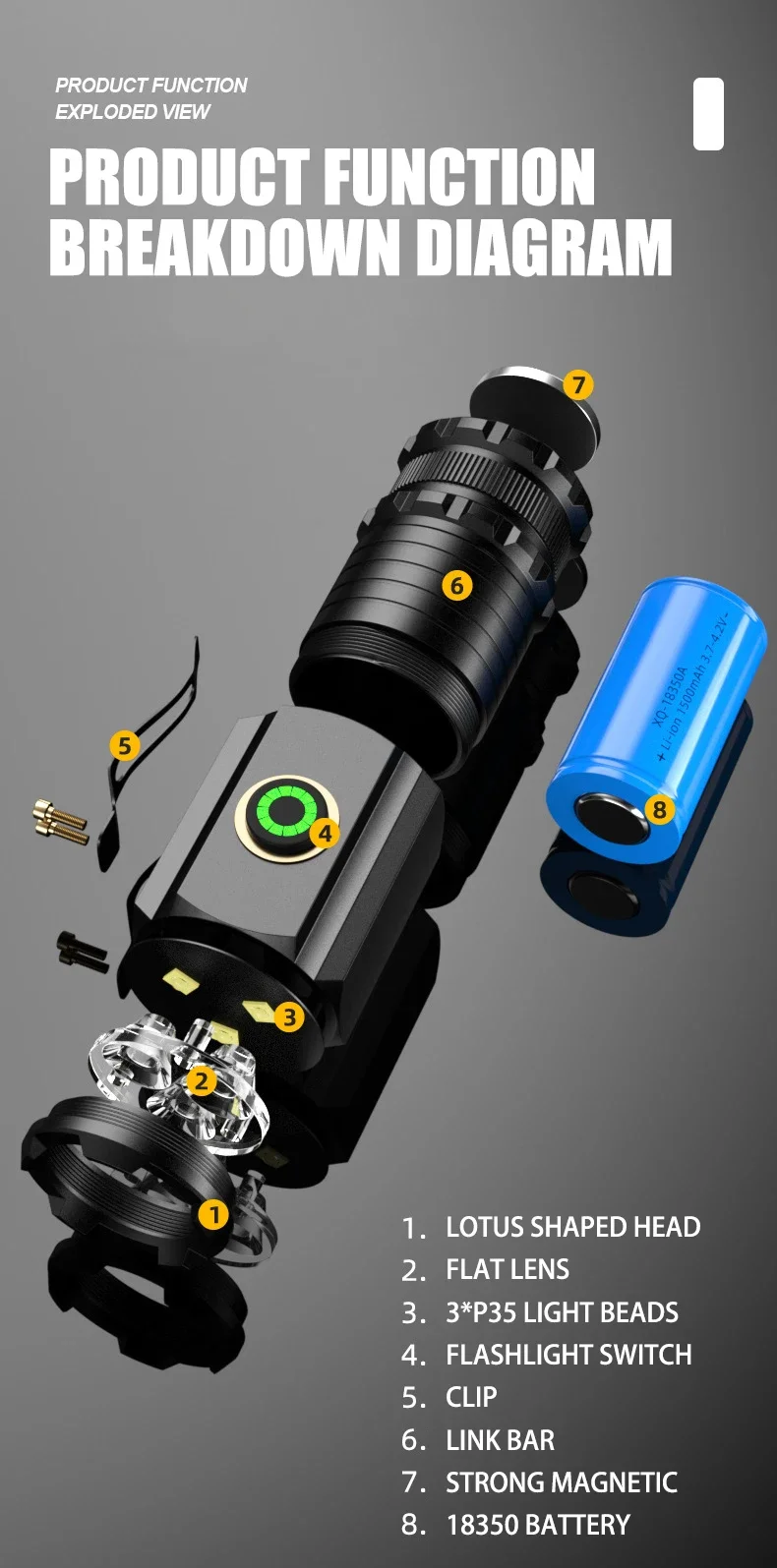 1*Flashlight + 1*18350 Battery+1* Type-C Charging data cable