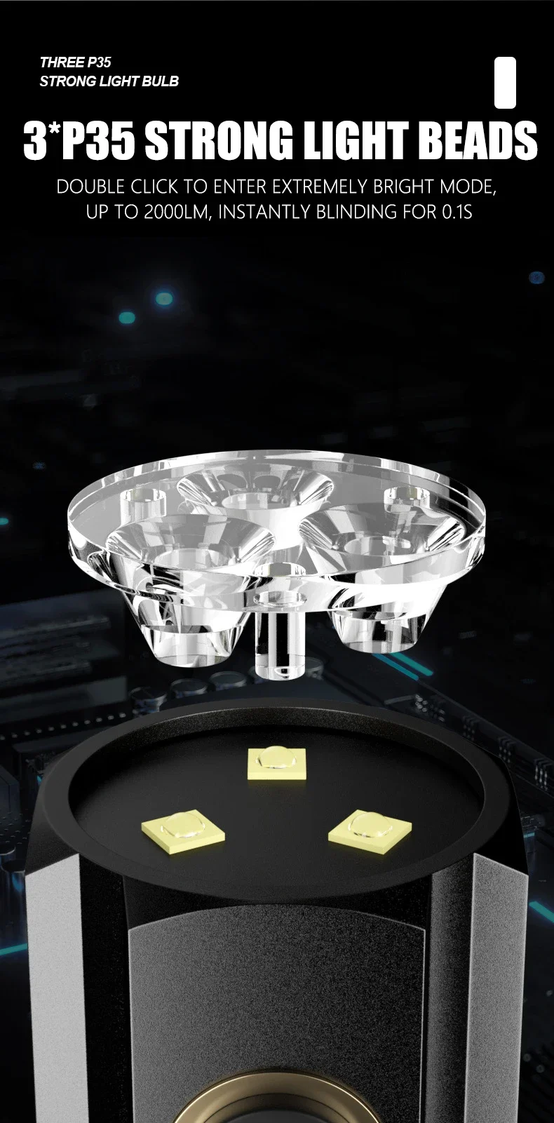 Lamp bead model: 3 * P35 super bright lamp bead