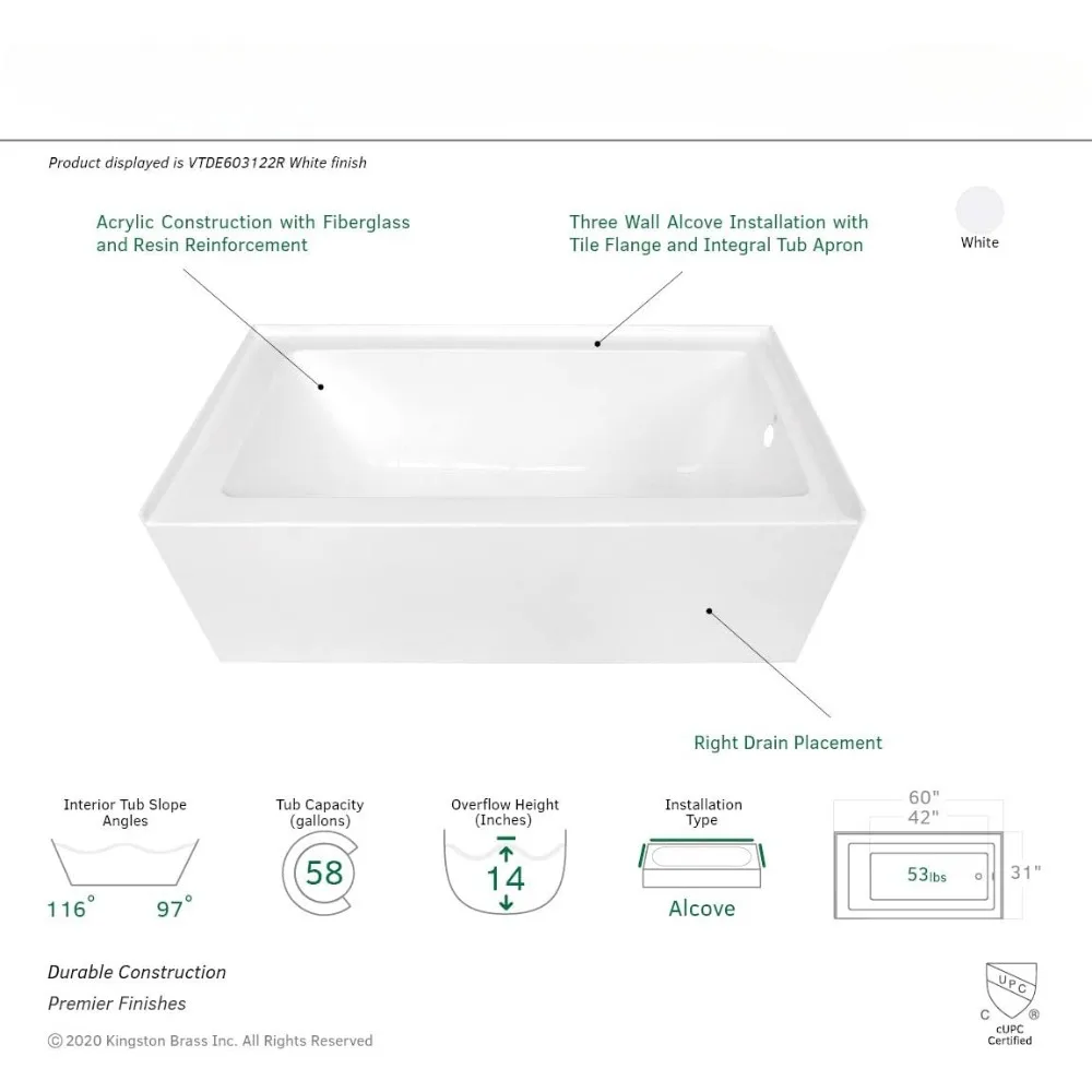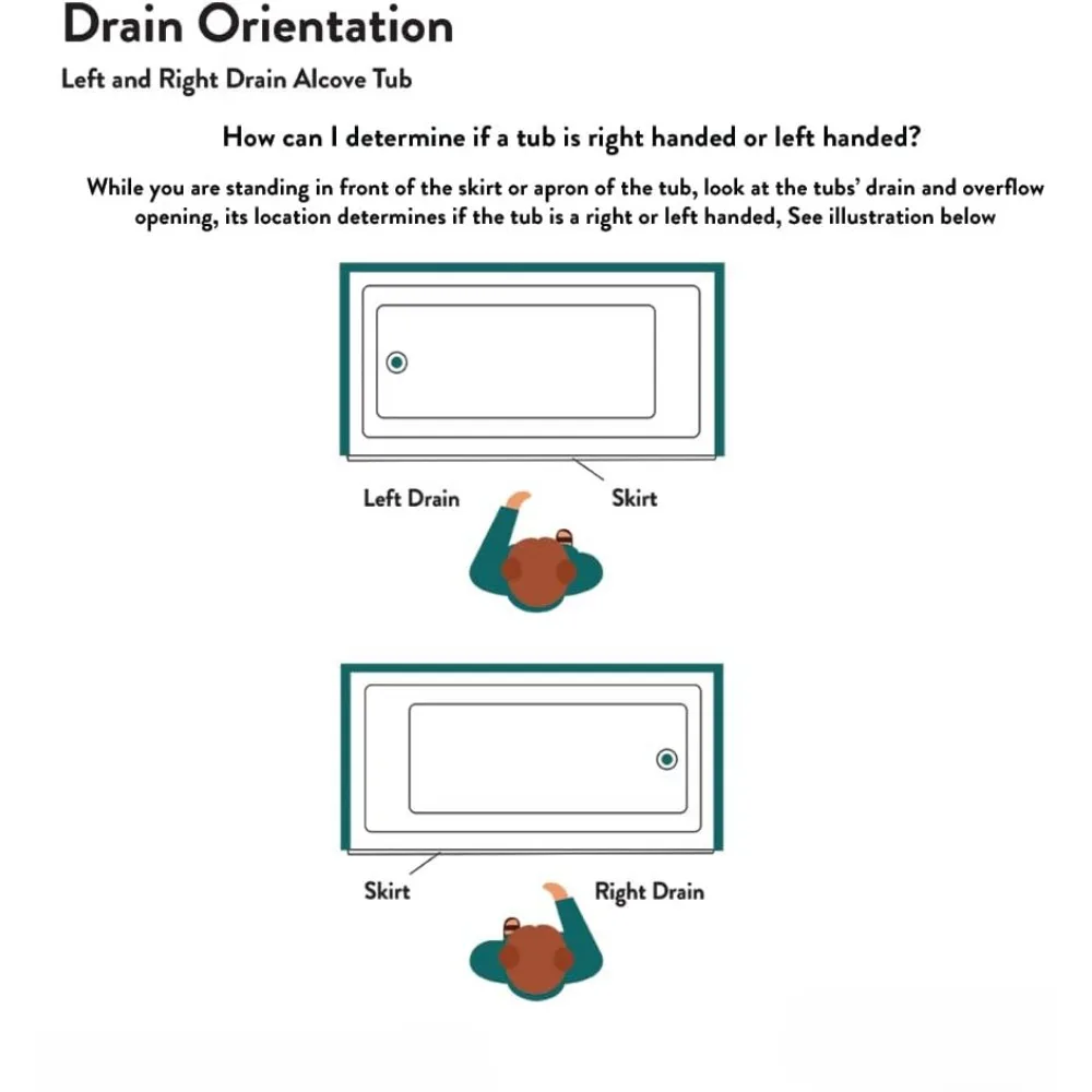 - Acrylic construction with fiberglass and resin reinforcement, three wall alcove installation with tile flange and integral tub apron | Drain kit is not included