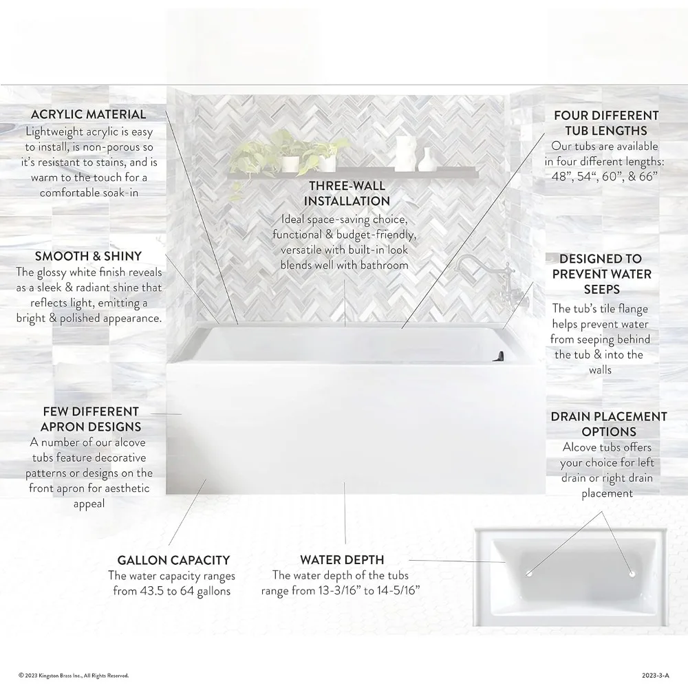 - Extremely user-friendly with effortless installation and simplistic construction, the alcove tub is the perfect addition to your home if you are looking for pristine performance and polished refinery