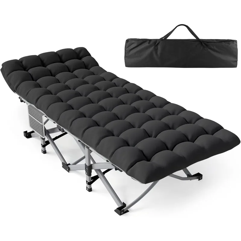 ZENPETIO Camping Cot for Adults, Heavy-Duty Portable Cot Bed with Mattress, Foldable Padded Sleeping Cots for Camping Travel Tent Day Bed Outdoor & Home Guest, Max Load 500 LBS, 75x28x15″