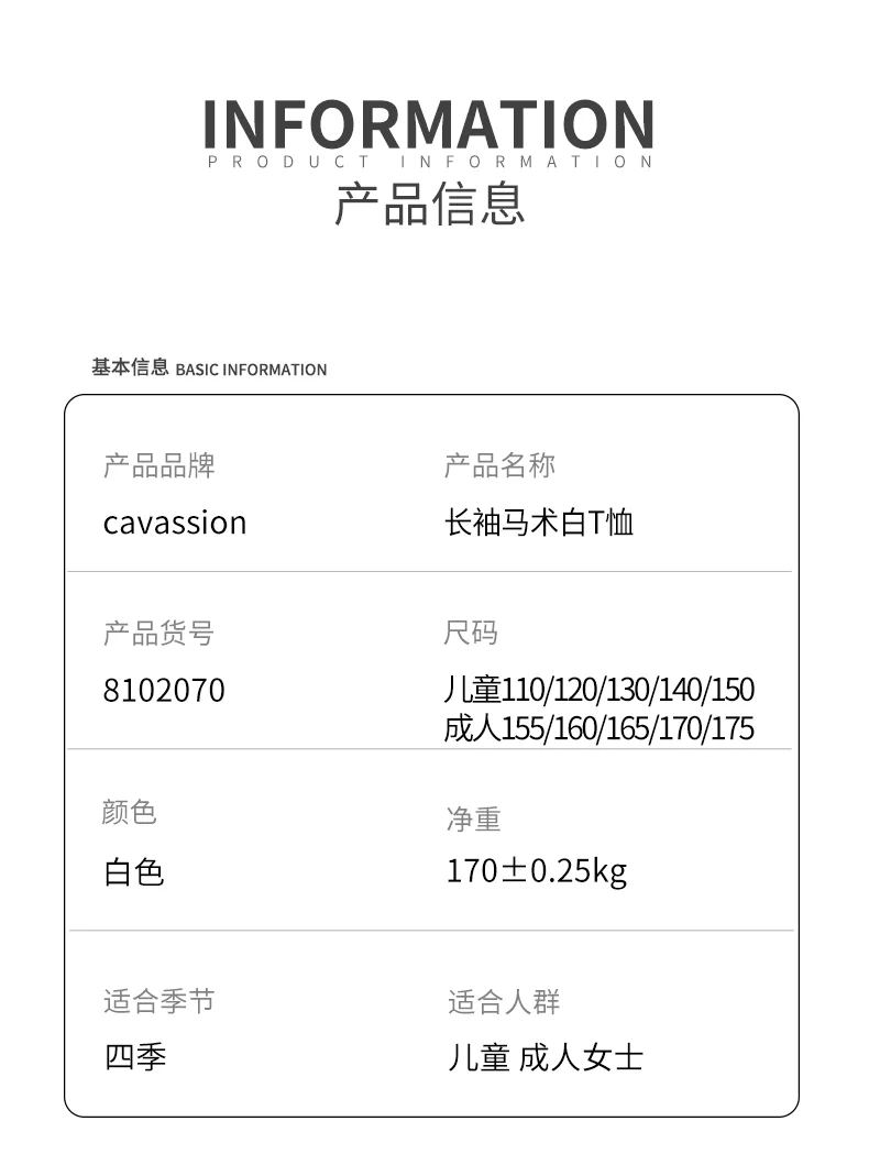 Cavassion equestrian T-shirt white color riding horse long sleeve shirt rider cloth child riding T shirt female shirt