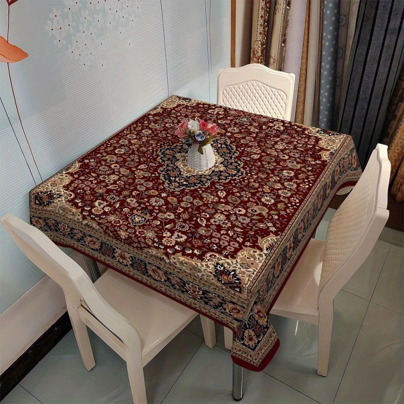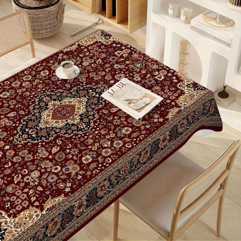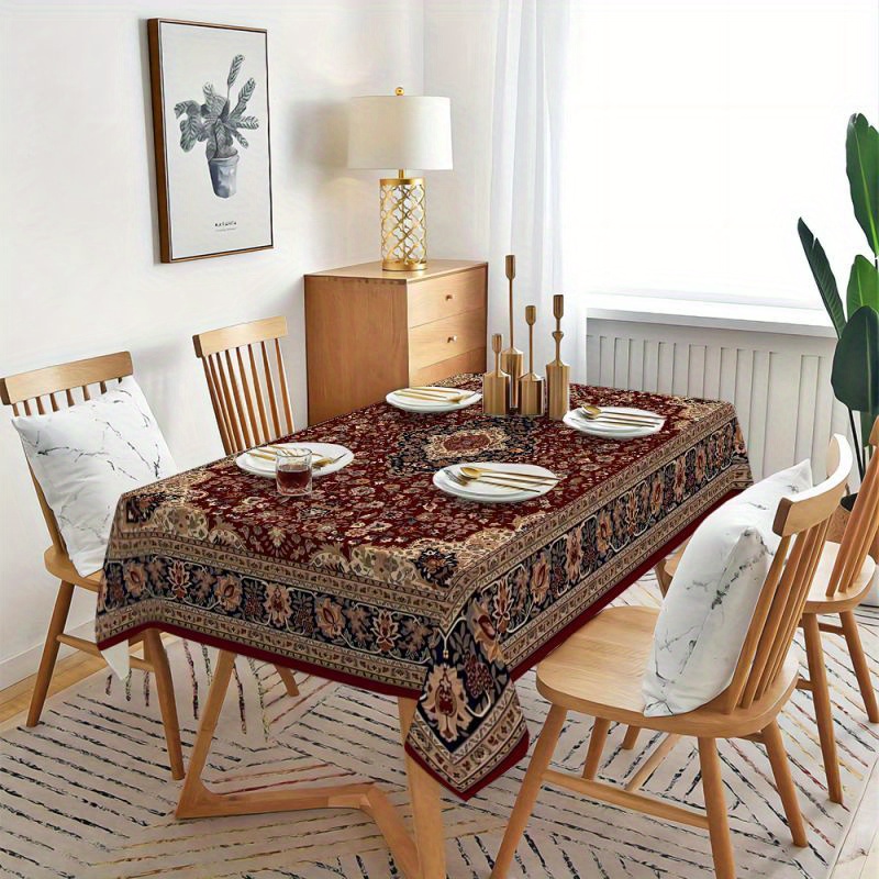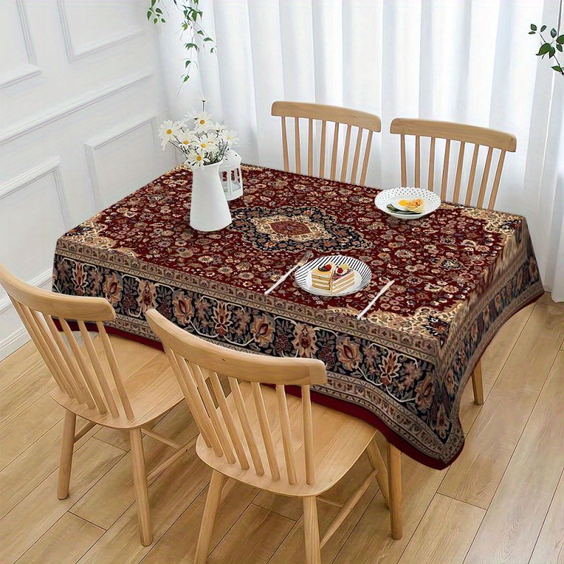 Classic European-Style Polyester Tablecloth – Elegant Vintage Floral Print, Symmetrical Pattern Design, Machine-Woven Durable Rectangular Table Cover, Ideal for Indoor & Outdoor Events, Oil-Resistant Easy-Clean Fabric for Dining, Parties, and Home Decor (