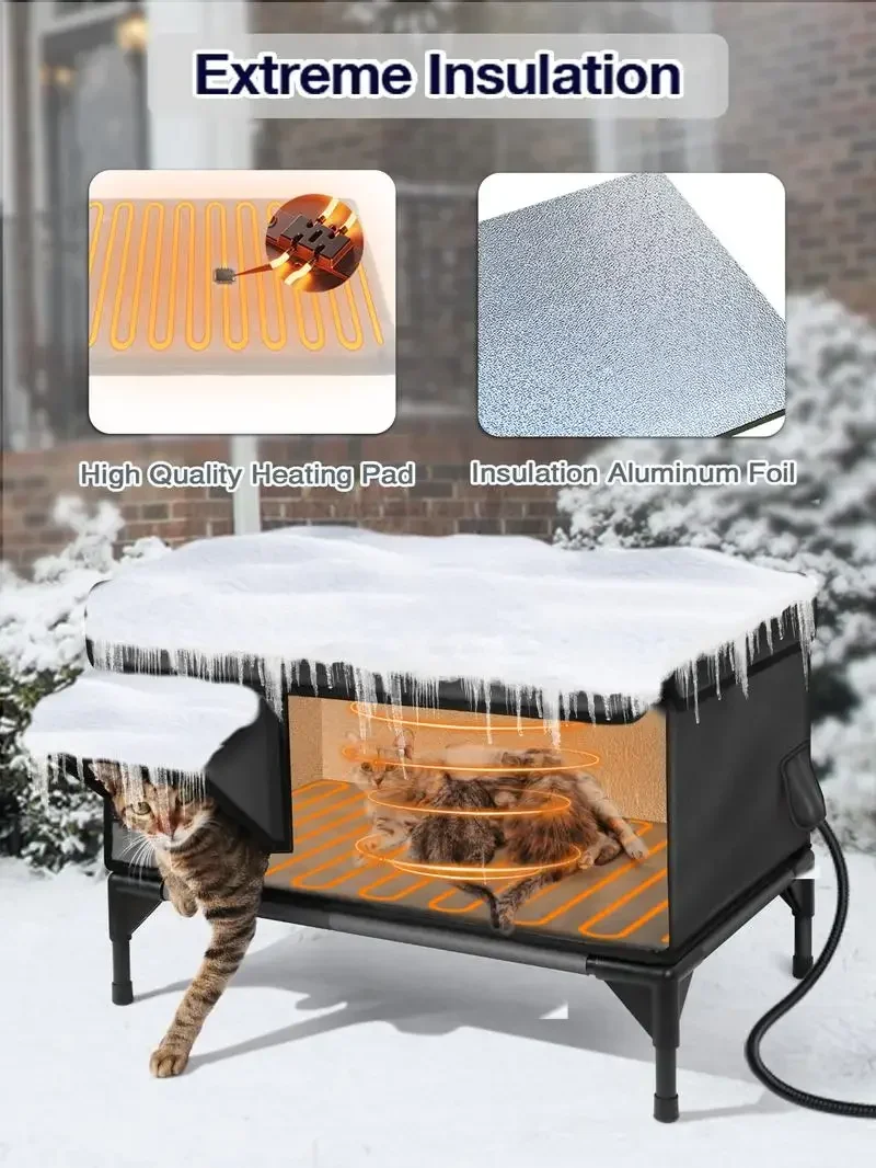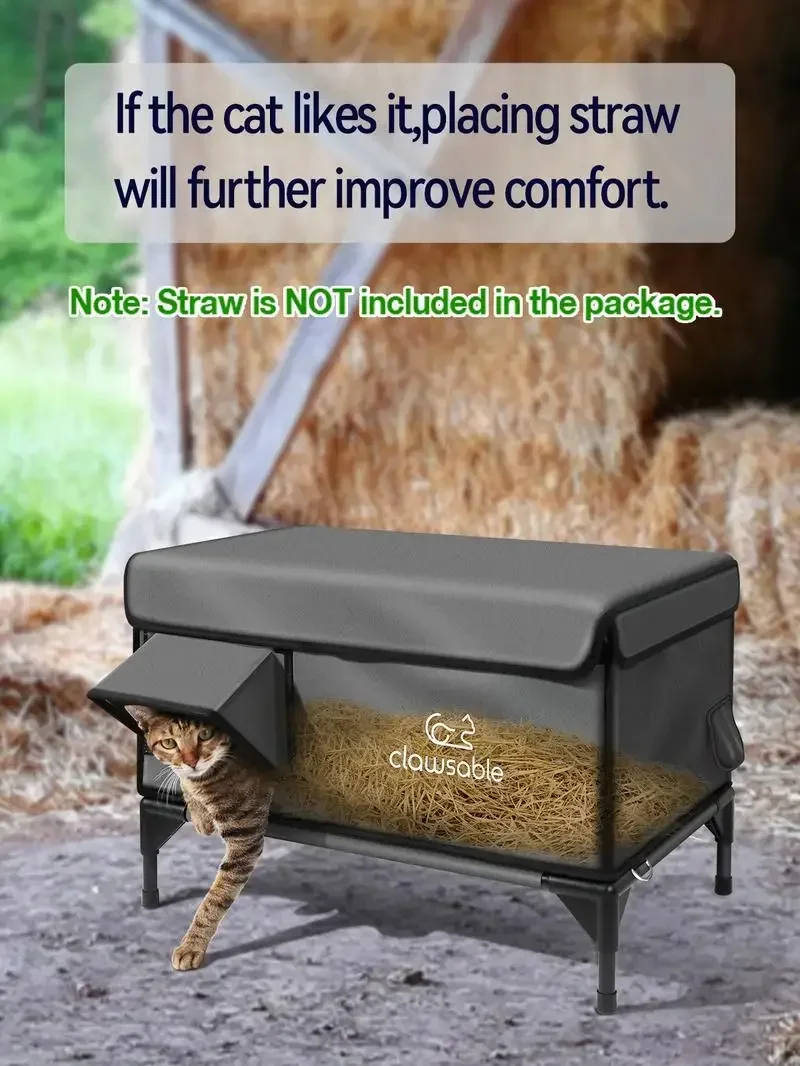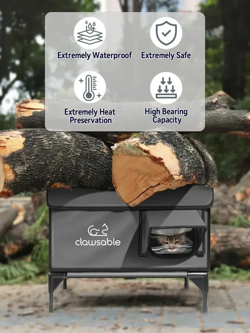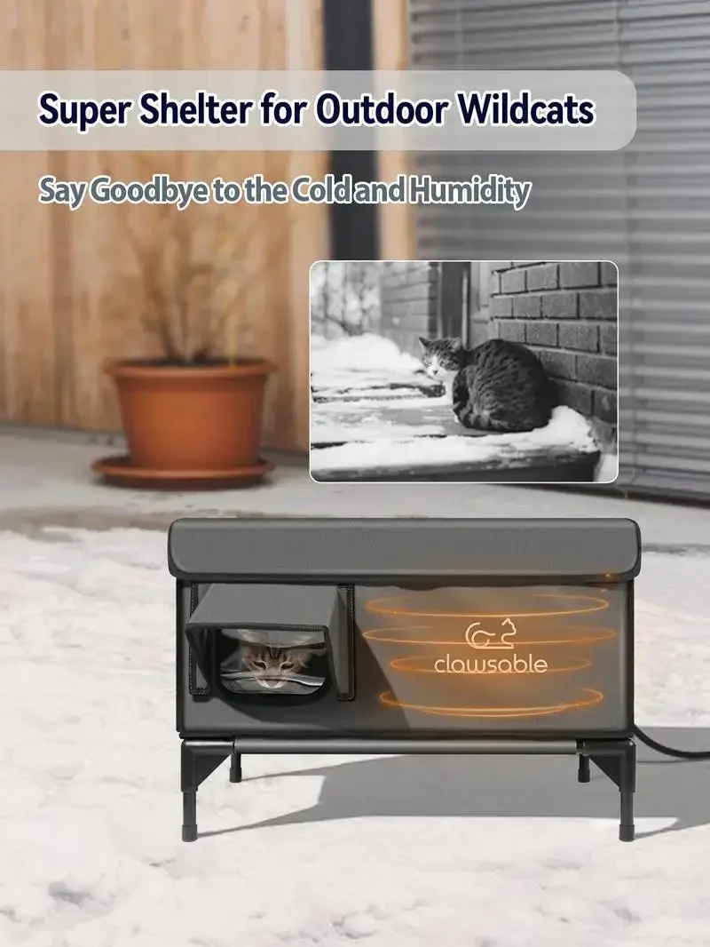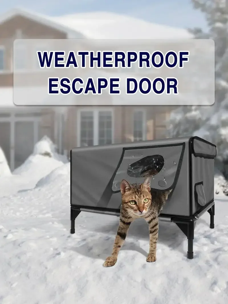 Clawsable Indestructible Heated Cat House for Outdoor Winter,100% Waterproof,Safe Escape Door,Fully Insulated Outdoor CatShelter