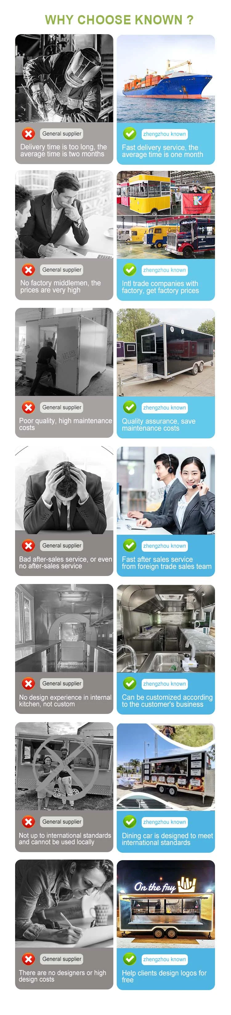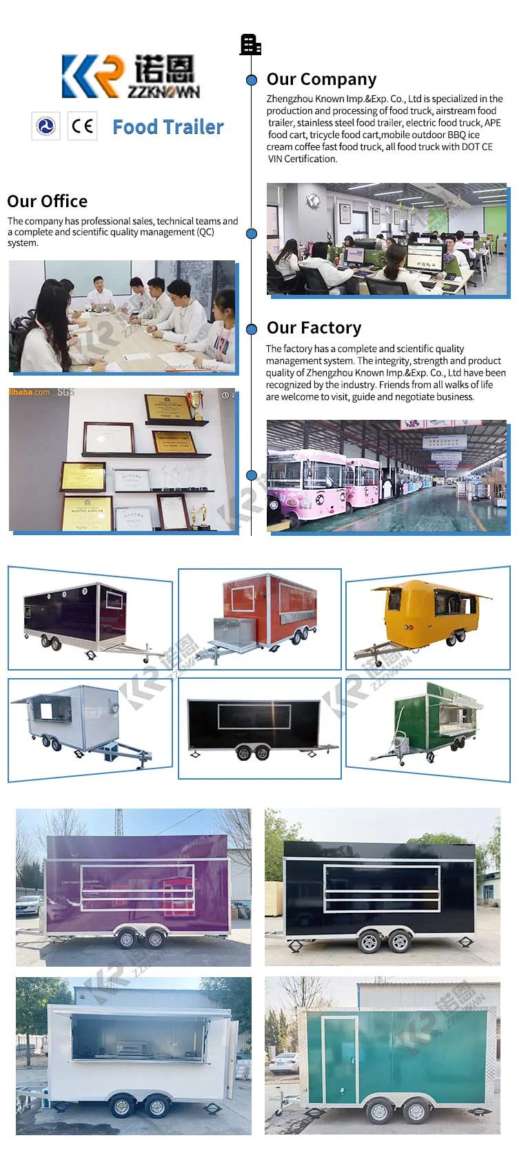 Our company specializes in producing all kinds of snack carts, hot selling mobile food trailers, well-equipped food truck equipment, hot dog carts, electric mobile food carts and other machinery. With leading technology, all of our products comply with international quality standards, are certified by CE, ISO, NSF, SGS, DOT, etc., and are appreciated worldwide.