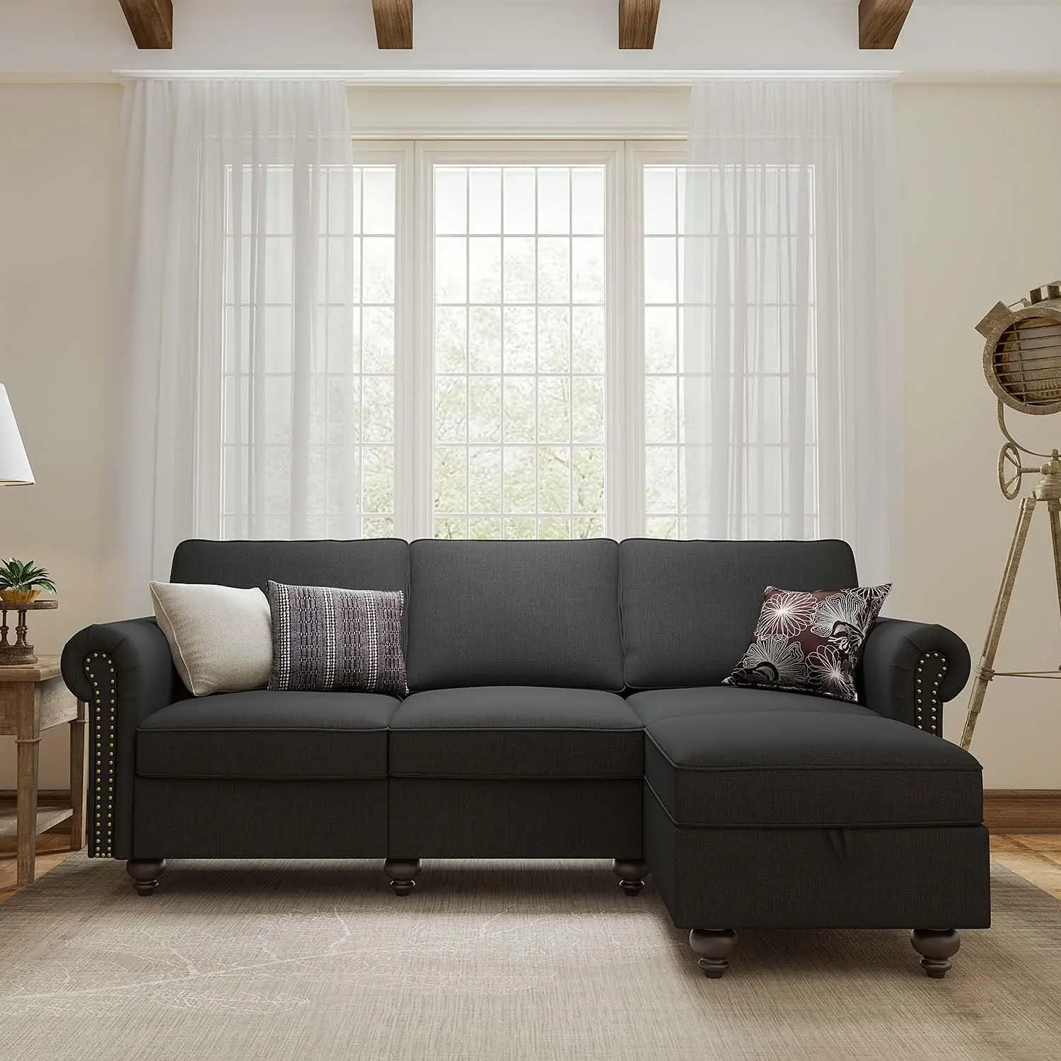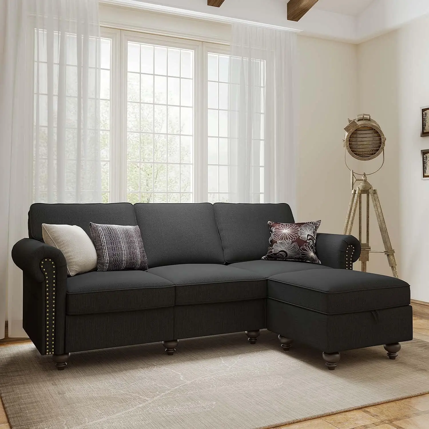 Convertible Sectional Sofa with Storage Ottoman, Couch for Apartment, 3 Seater Sectional Couches for Living Room