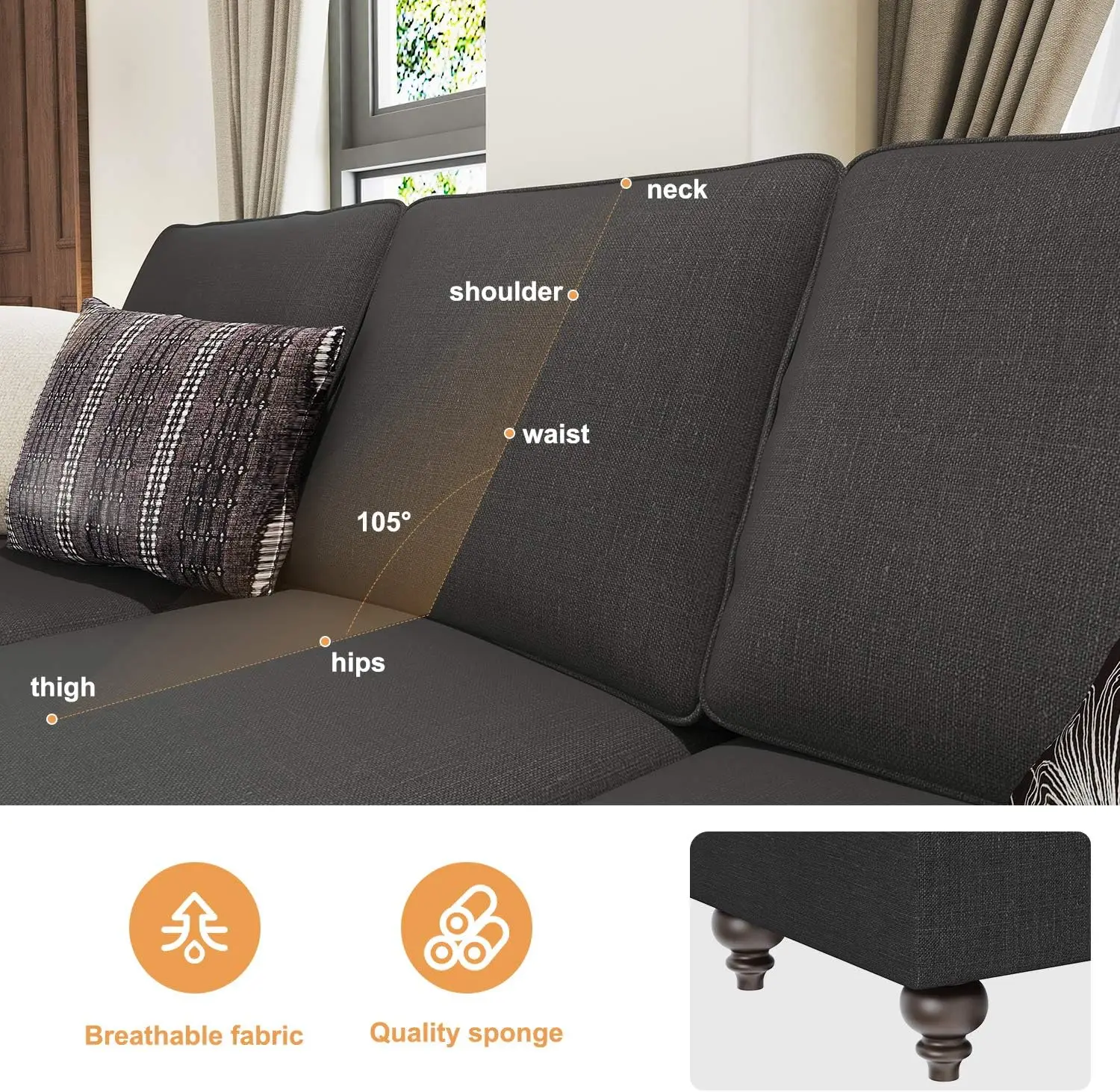 • 【Sturdy Structure】Crafted with a solid wood frame, this L-shaped couch ensures durability and stability. The wooden sofa legs provide reliable support for everyday use.