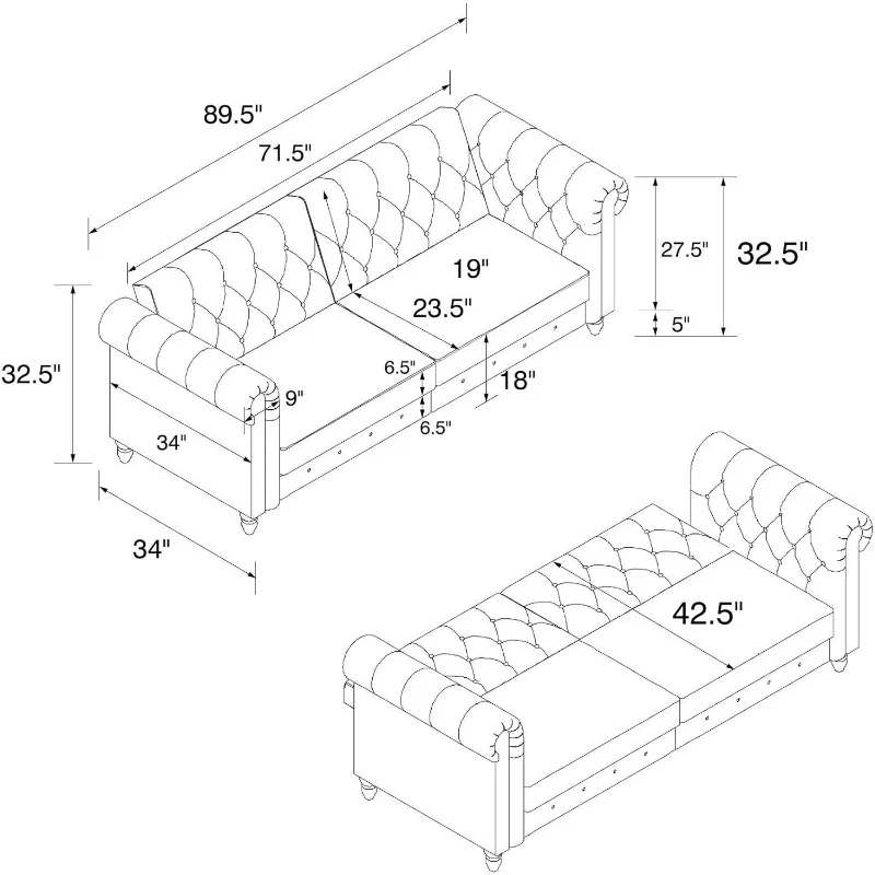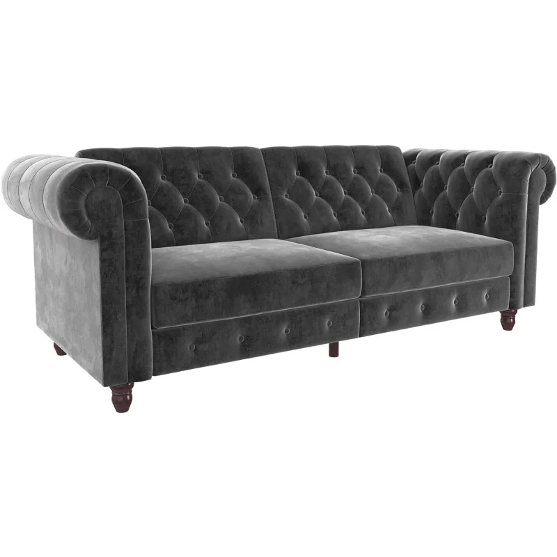 DHP Felix Chesterfield Sofa Futon, Grey Velvet