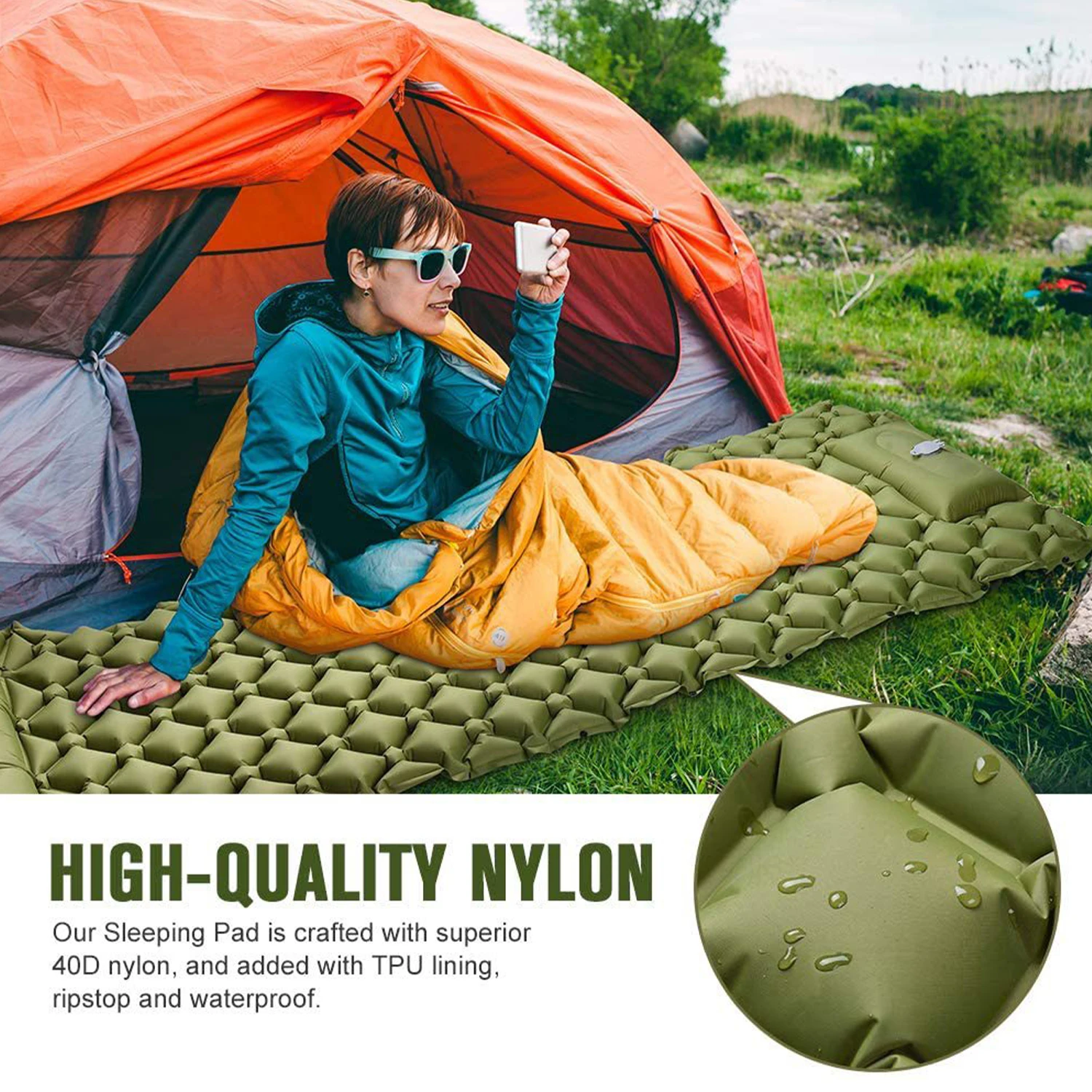 –  Premium Material: The 2-person camping sleeping pad is made of 40D nylon and TPU coated material, durable, hard-wearing, and no tearing. The camping mattresses are easy to clean, if there is dust or grime, just wipe them down. Designed for harsh outdoor environments, it is your best companion while camping.