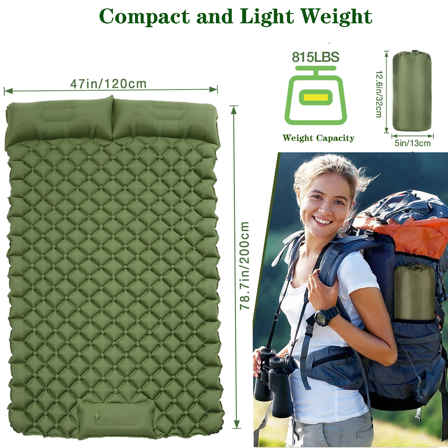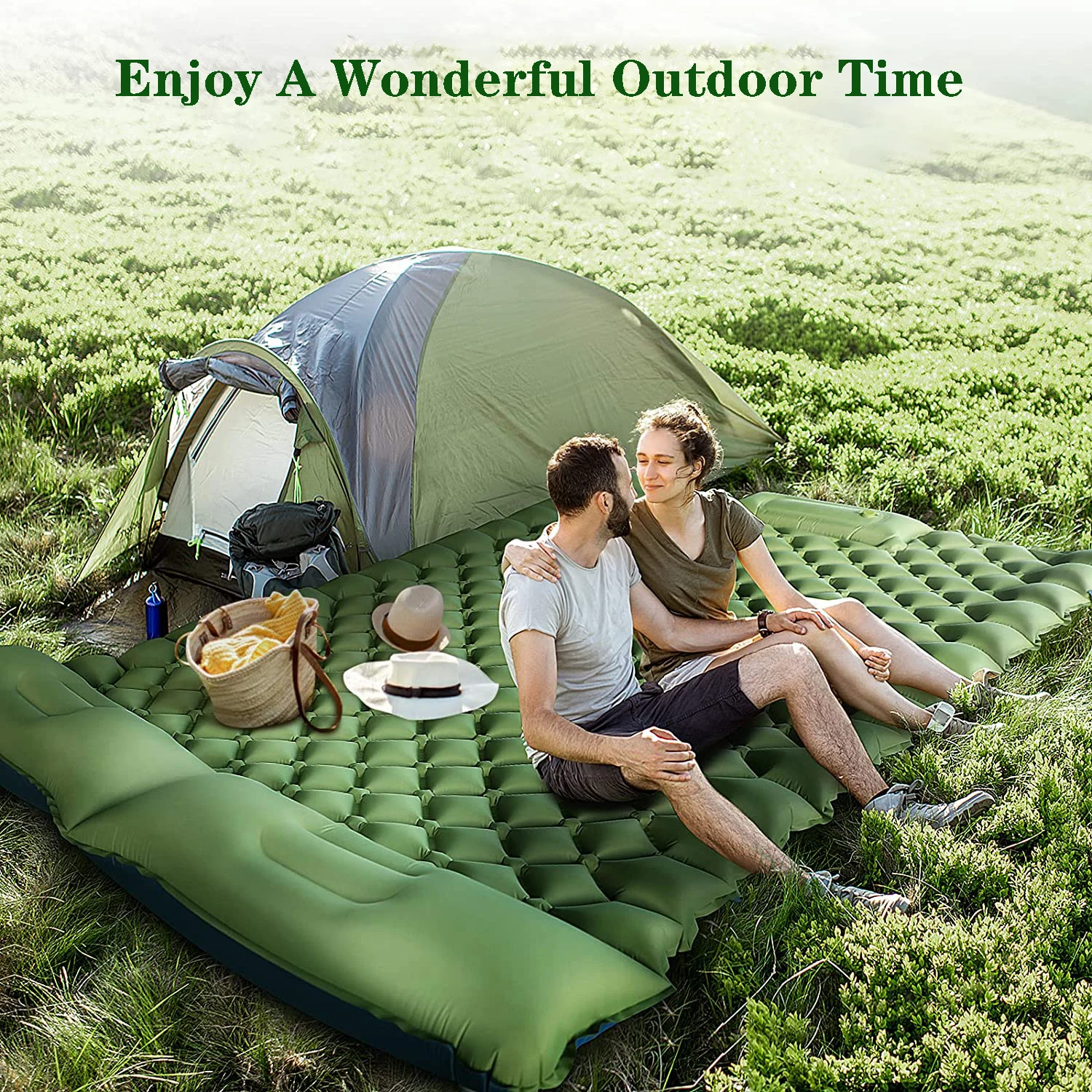 –  Premium Material: The 2-person camping sleeping pad is made of 40D nylon and TPU coated material, durable, hard-wearing, and no tearing. The camping mattresses are easy to clean, if there is dust or grime, just wipe them down. Designed for harsh outdoor environments, it is your best companion while camping.