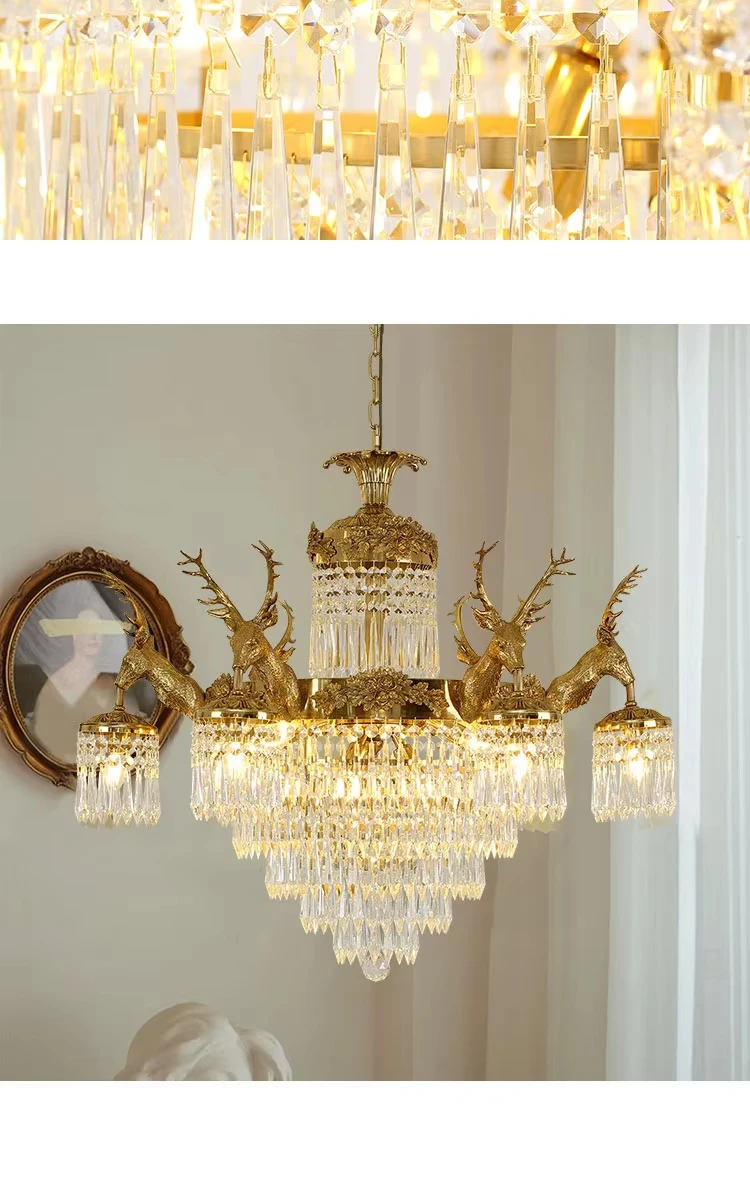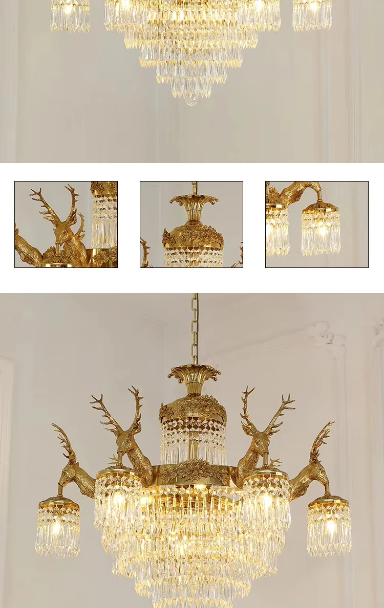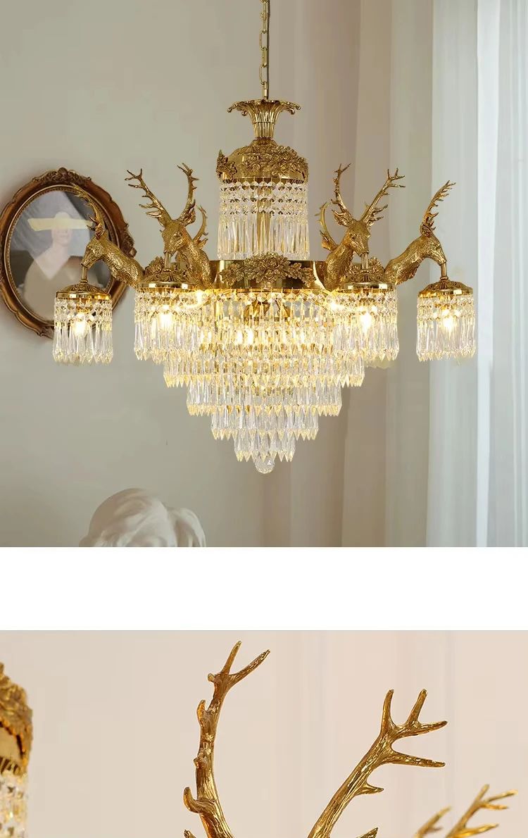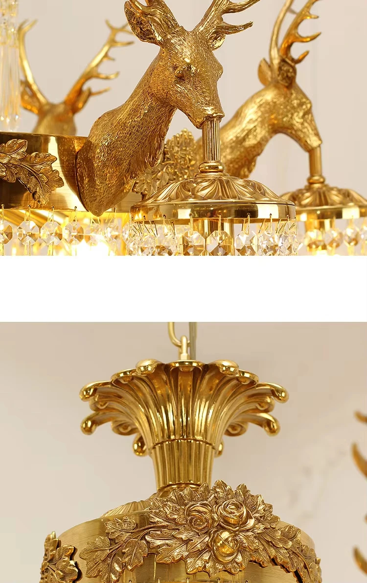 Be the first to review “European rococo style full brass lamp k9 crystal shade deer antler fish chandelier centerpieces”