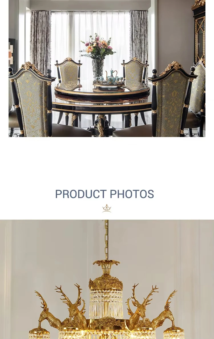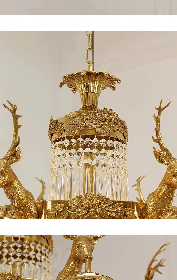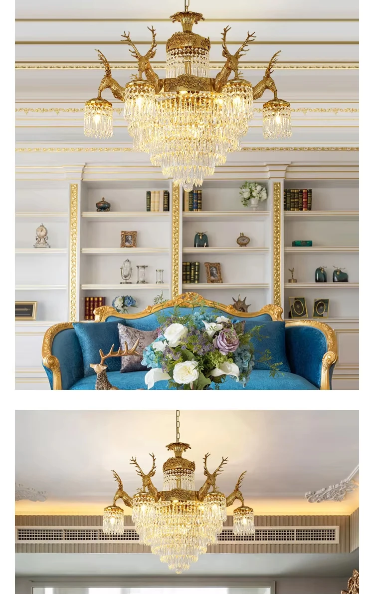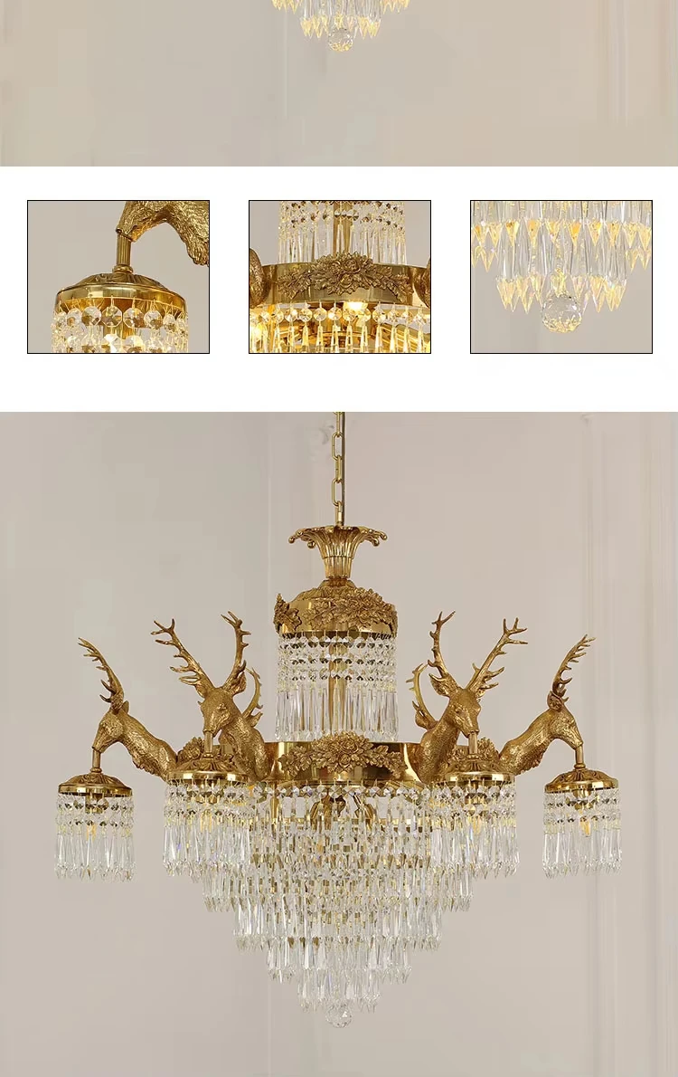 Be the first to review “European rococo style full brass lamp k9 crystal shade deer antler fish chandelier centerpieces”