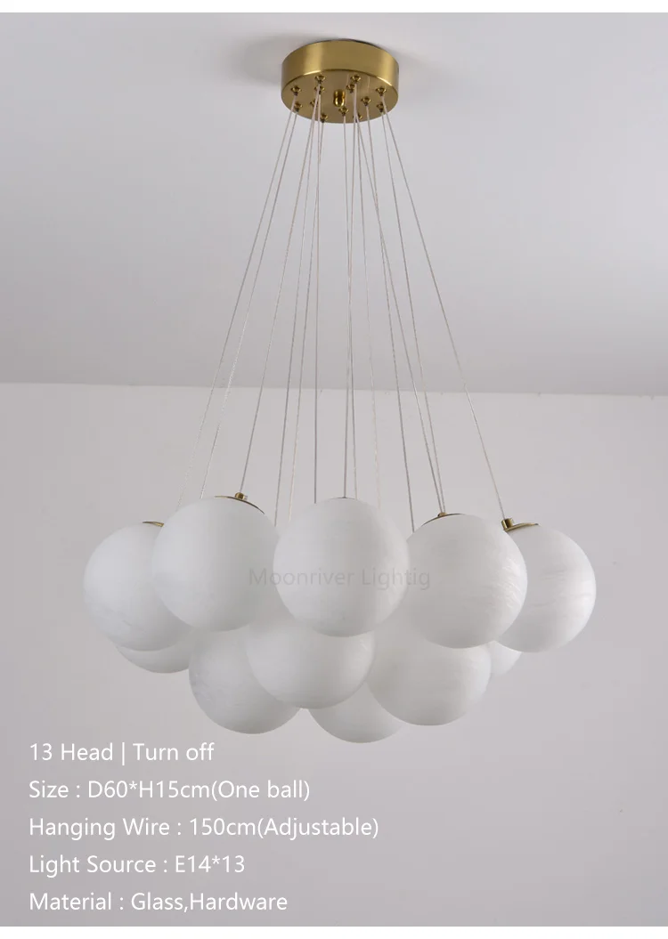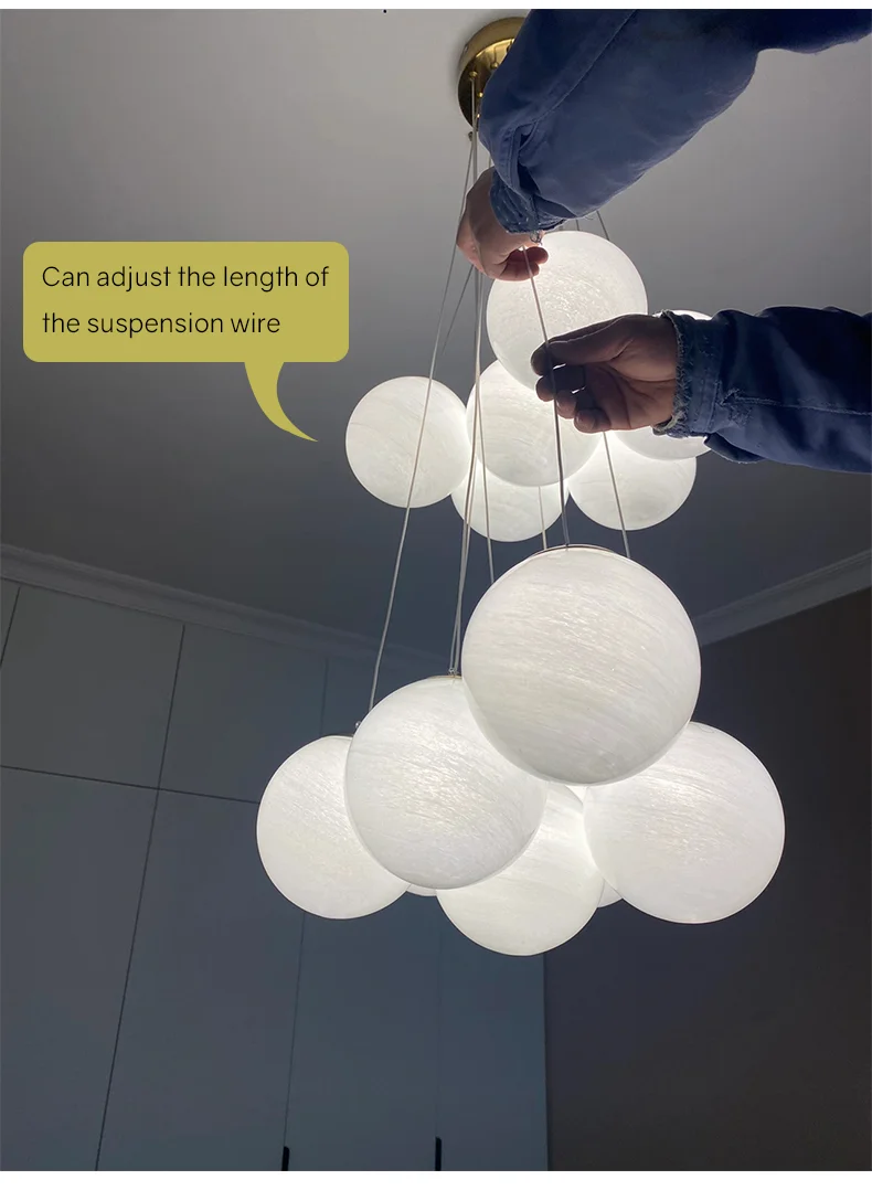 Glass Lampshade Moon Ceiling Pendant Lamp Living Room Bedroom White Ball Ceiling Light Hotel Chandelier Room Decor Mood light
