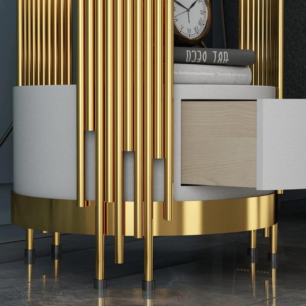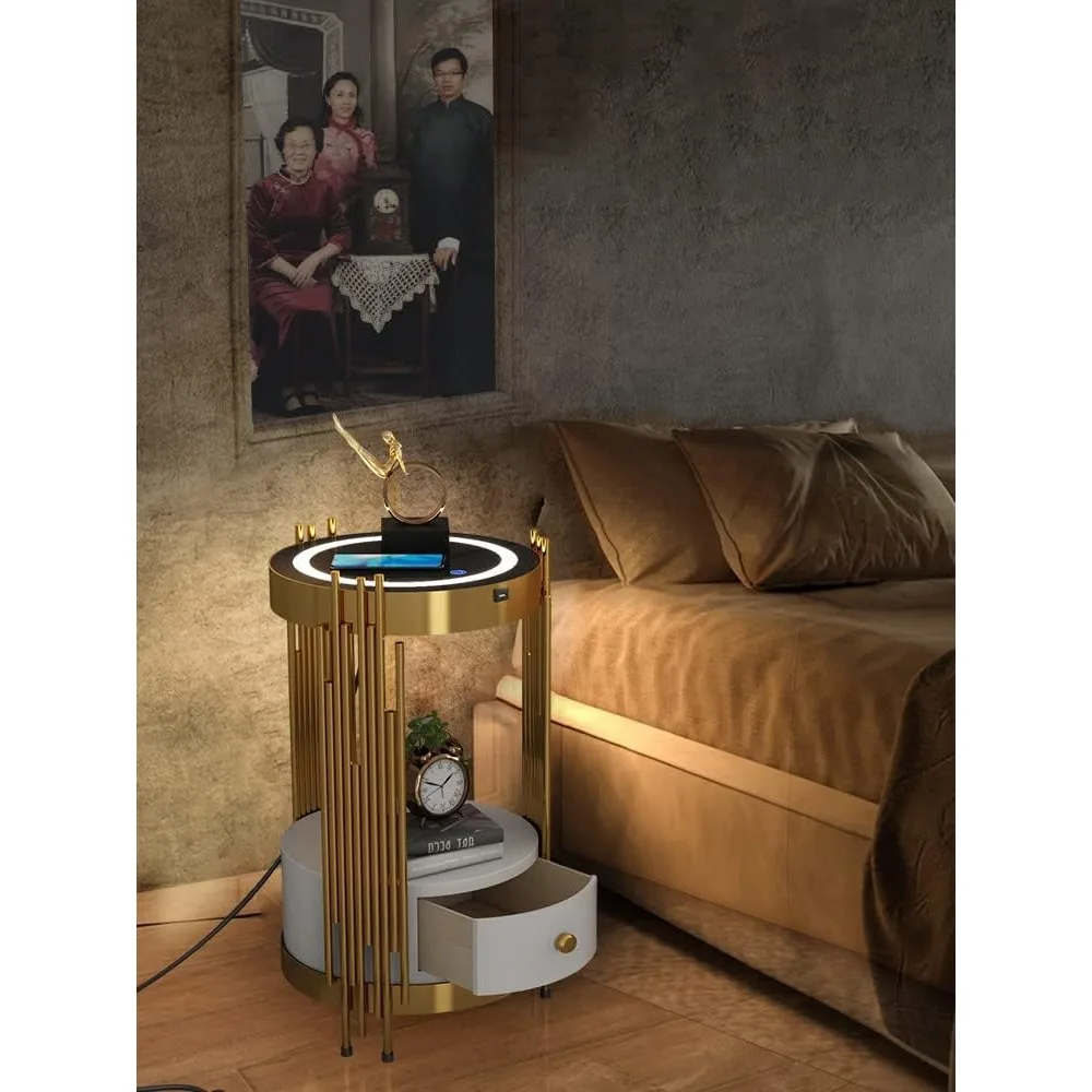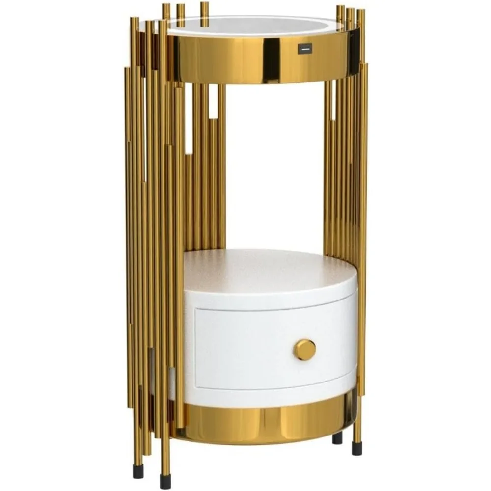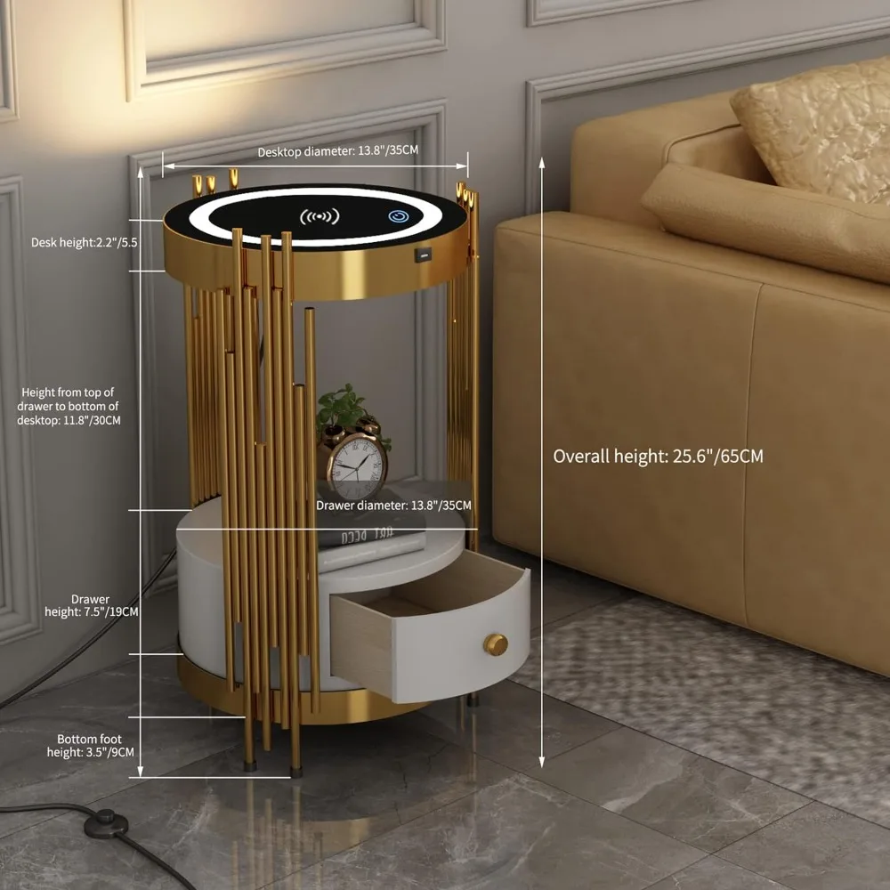- 【Unique design:】 The gold finish and unique shape make it a stylish addition to your bedroom or living room decor. Tempered glass top that provides a sleek, modern look