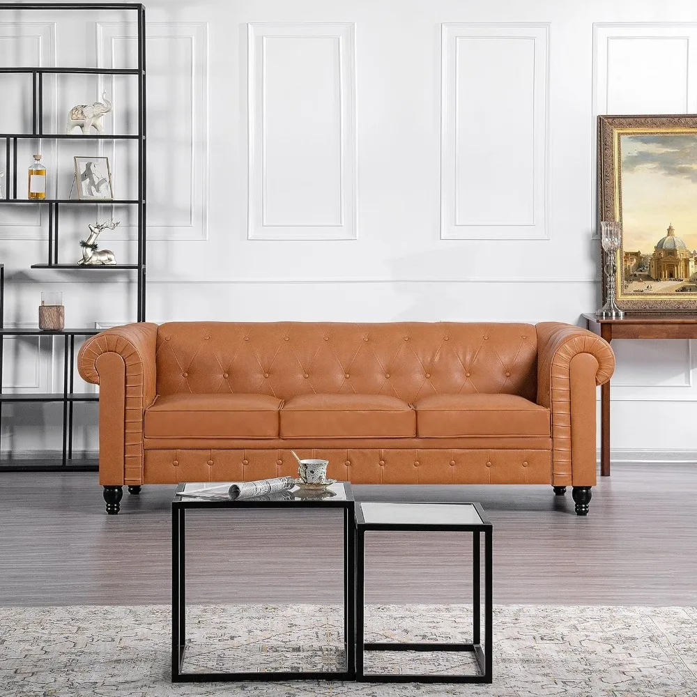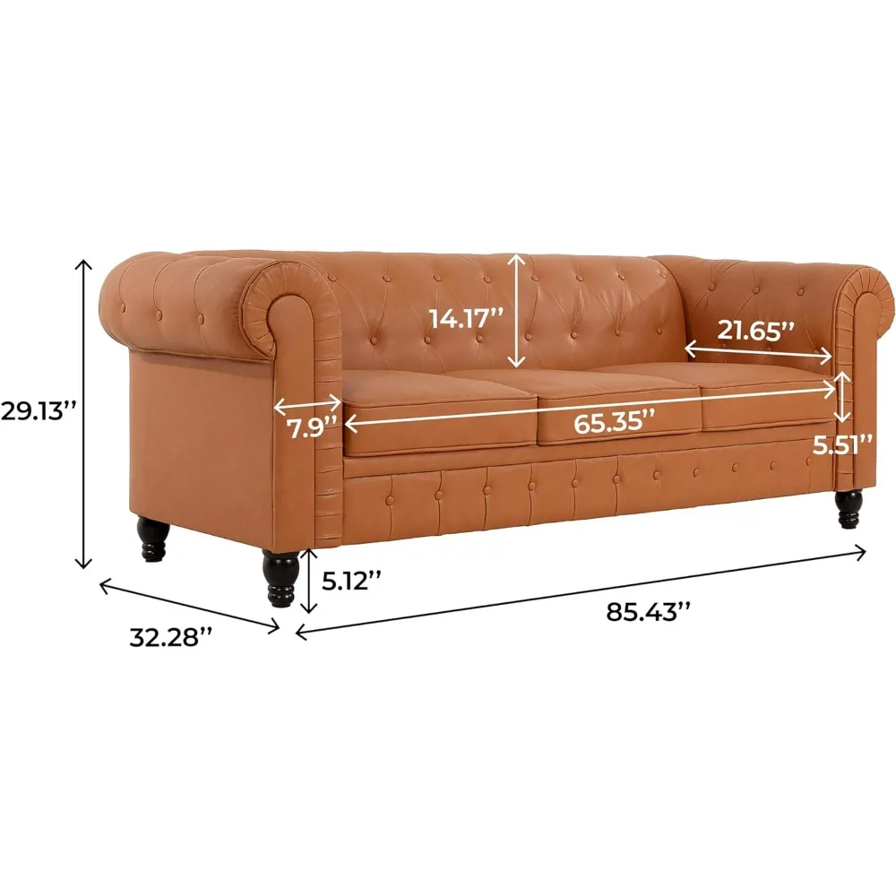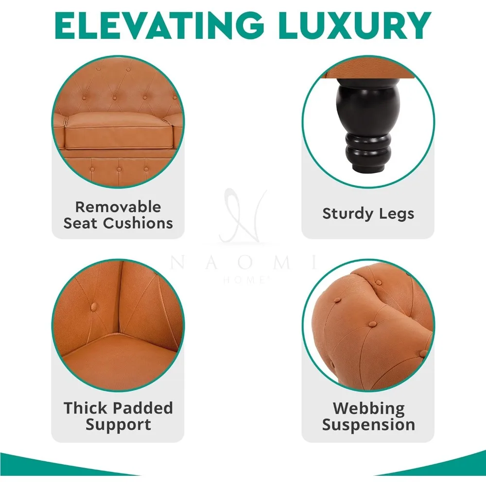 - ROLLED ARMS: To complete the refined Chesterfield look, this couch sectional features beautifully rolled arms. Couches for small spaces add an air of sophistication to your room and compliment the tufted diamond stitching. This small couch for small spaces provides a more comfortable place to lean against while relaxing on your sofa. The sofa cushion is built with a firm hardwood frame, air leather for a thick padded support, and solid wooden legs.