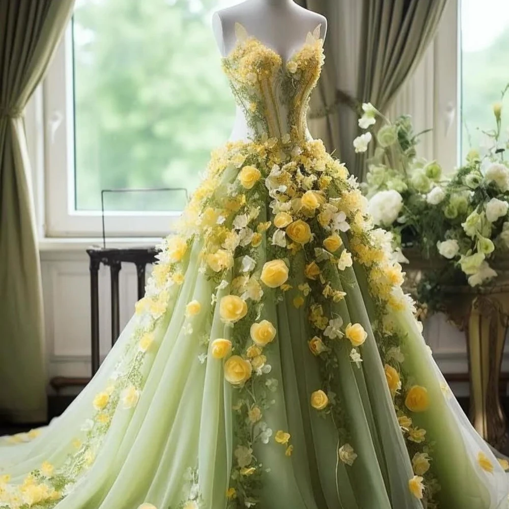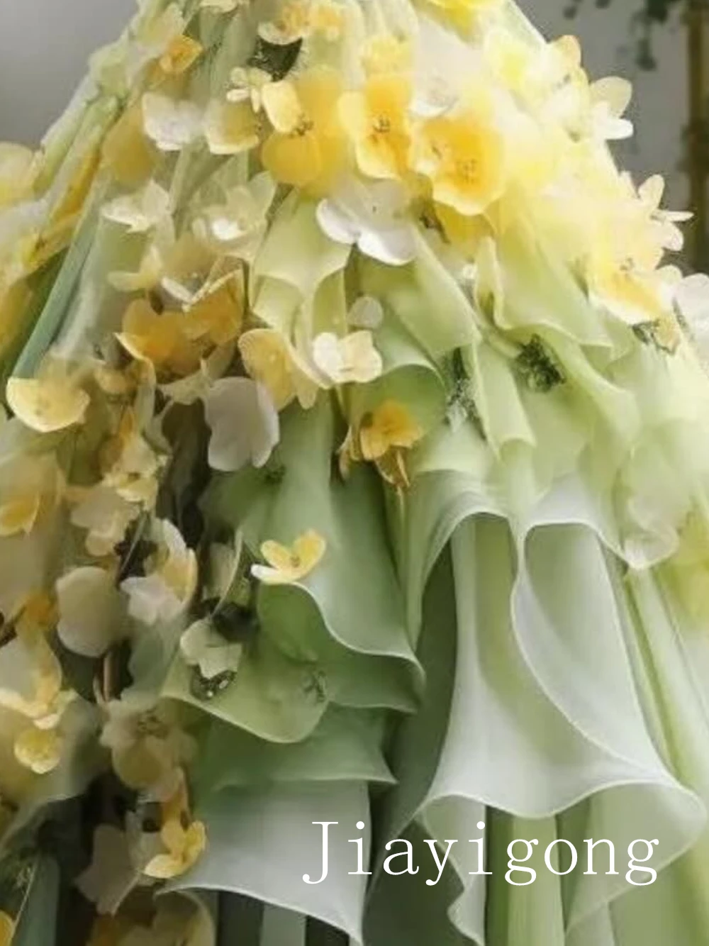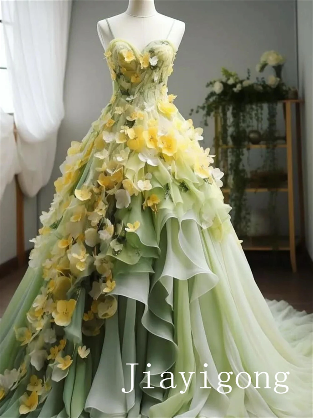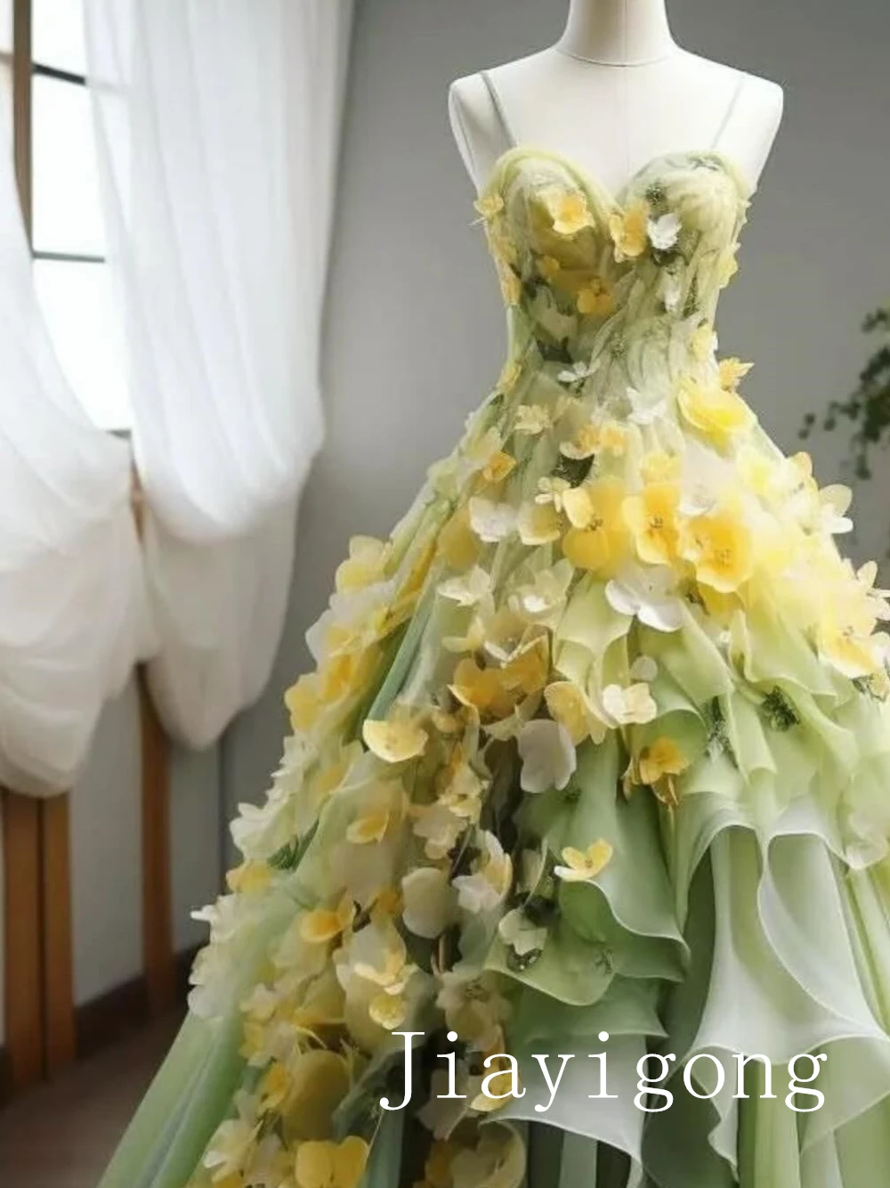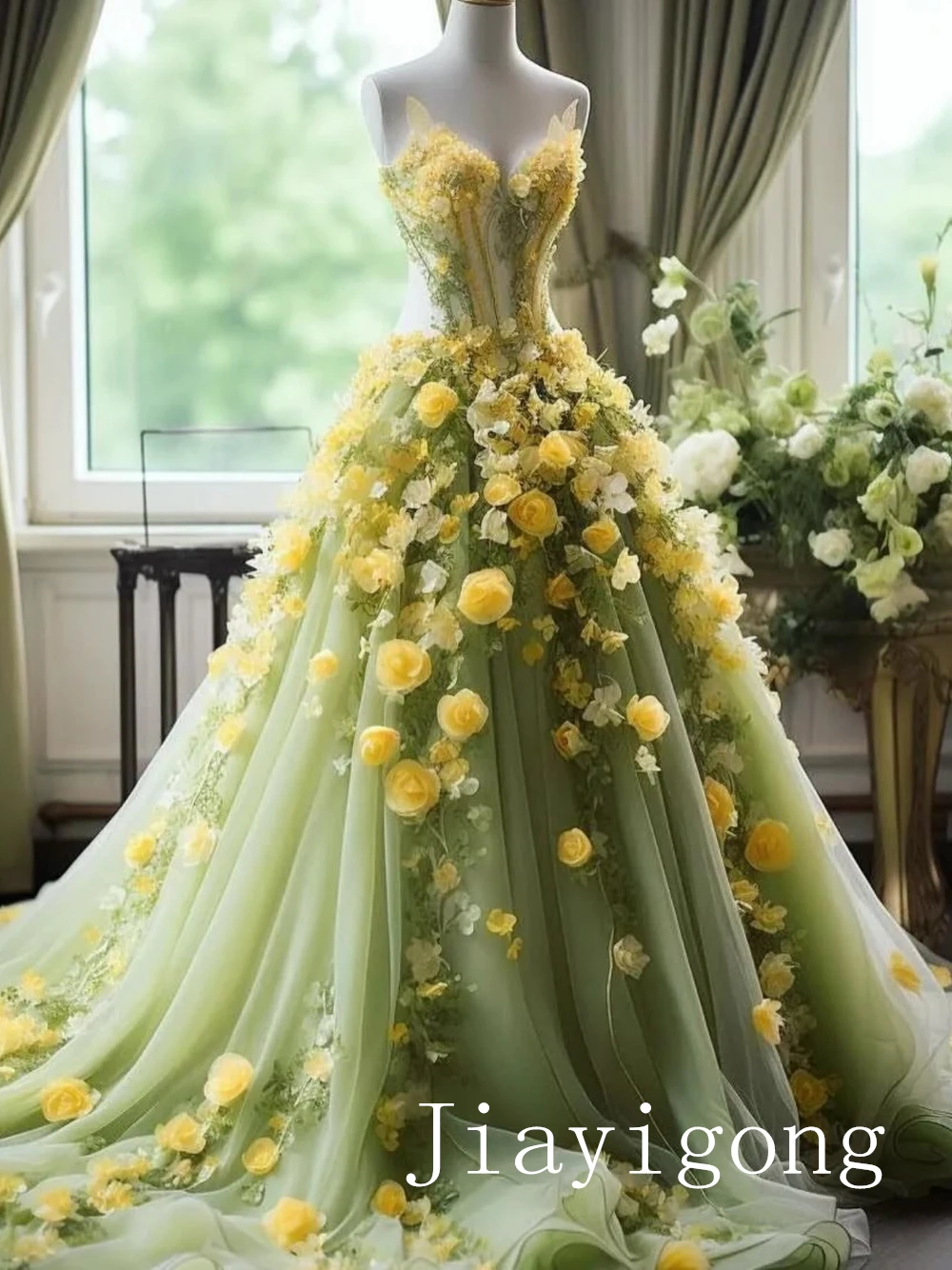 Jiayigong High Quality Strapless A-line Celebrity Dresses Flower Applique Organza Floor Length Custom Dress