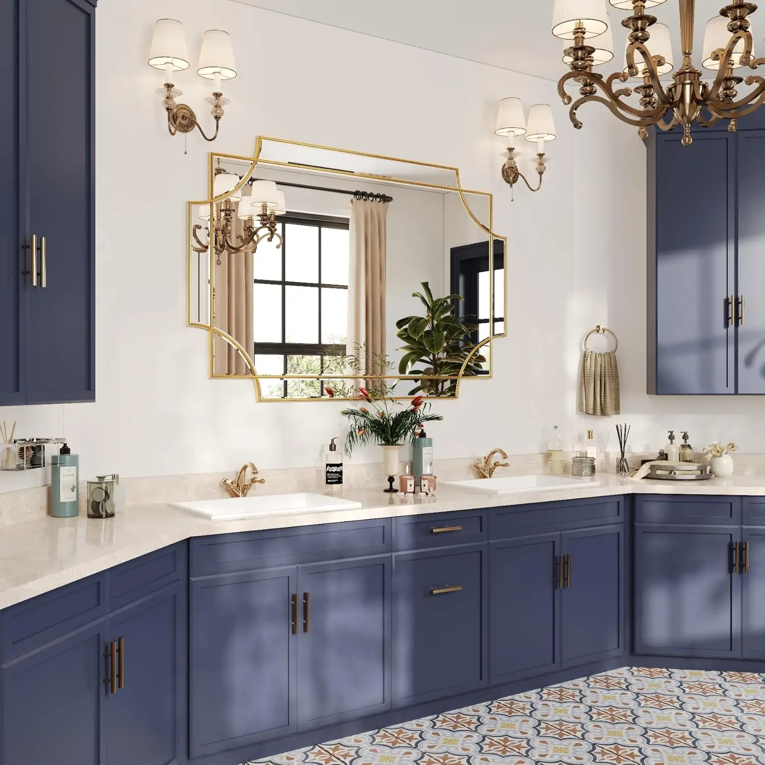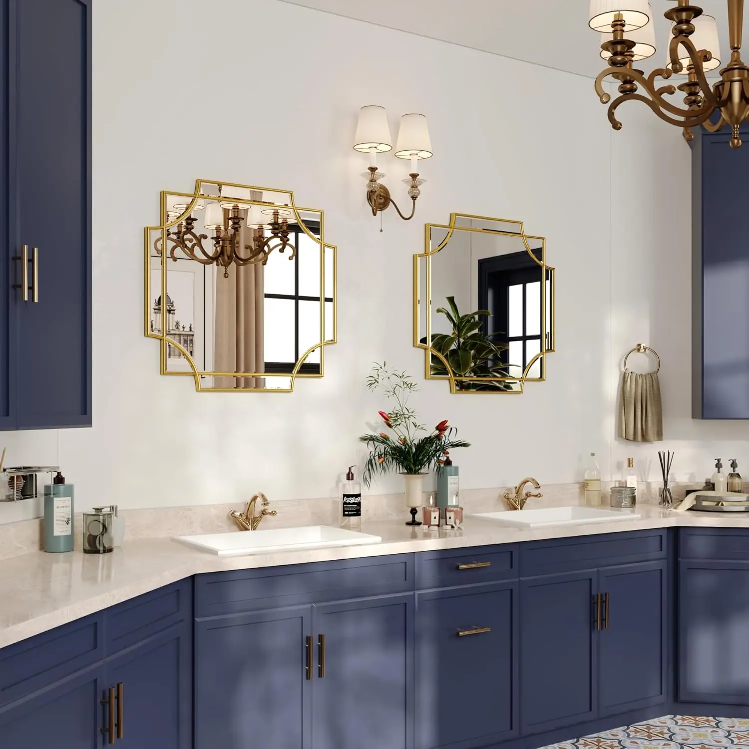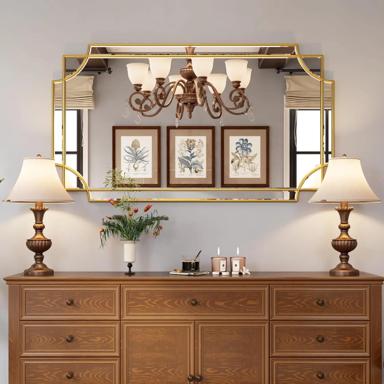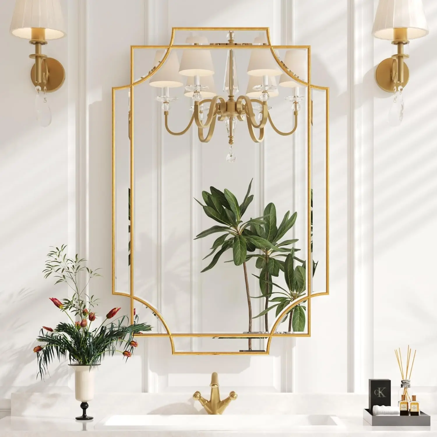 - UNTIQUE DESIGN. If your want some intricacies/interest to the pattern – not just a simple round or rectangle, this mirror will definitely be your perfect choice. Its sophisticated cutout corner accents along the inner and outer edges of the frame complete the look with added decorative detail. It will be a beautiful addition to any wall and an essential element in your home decor.