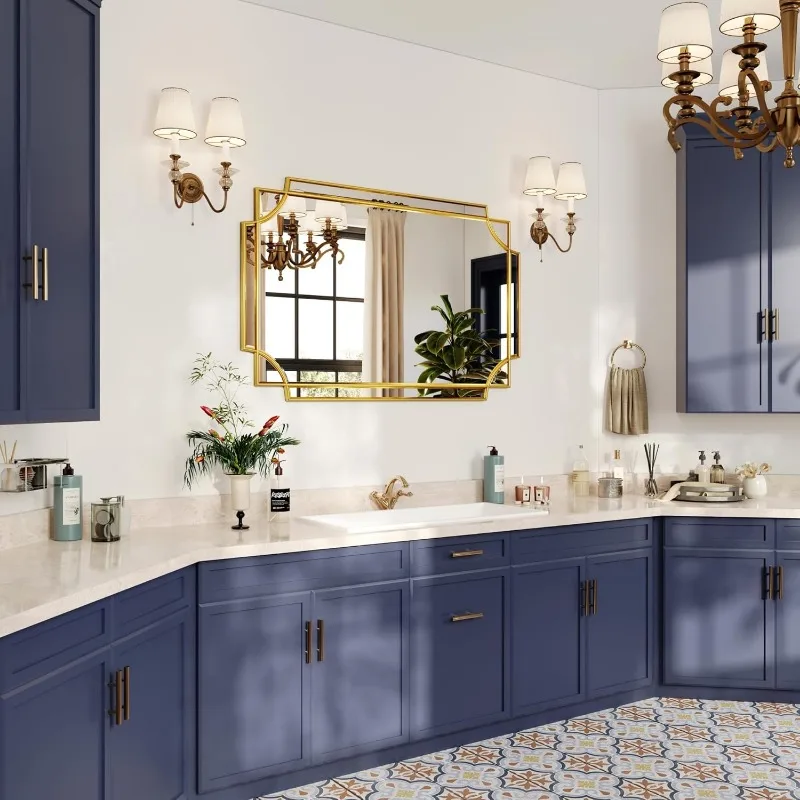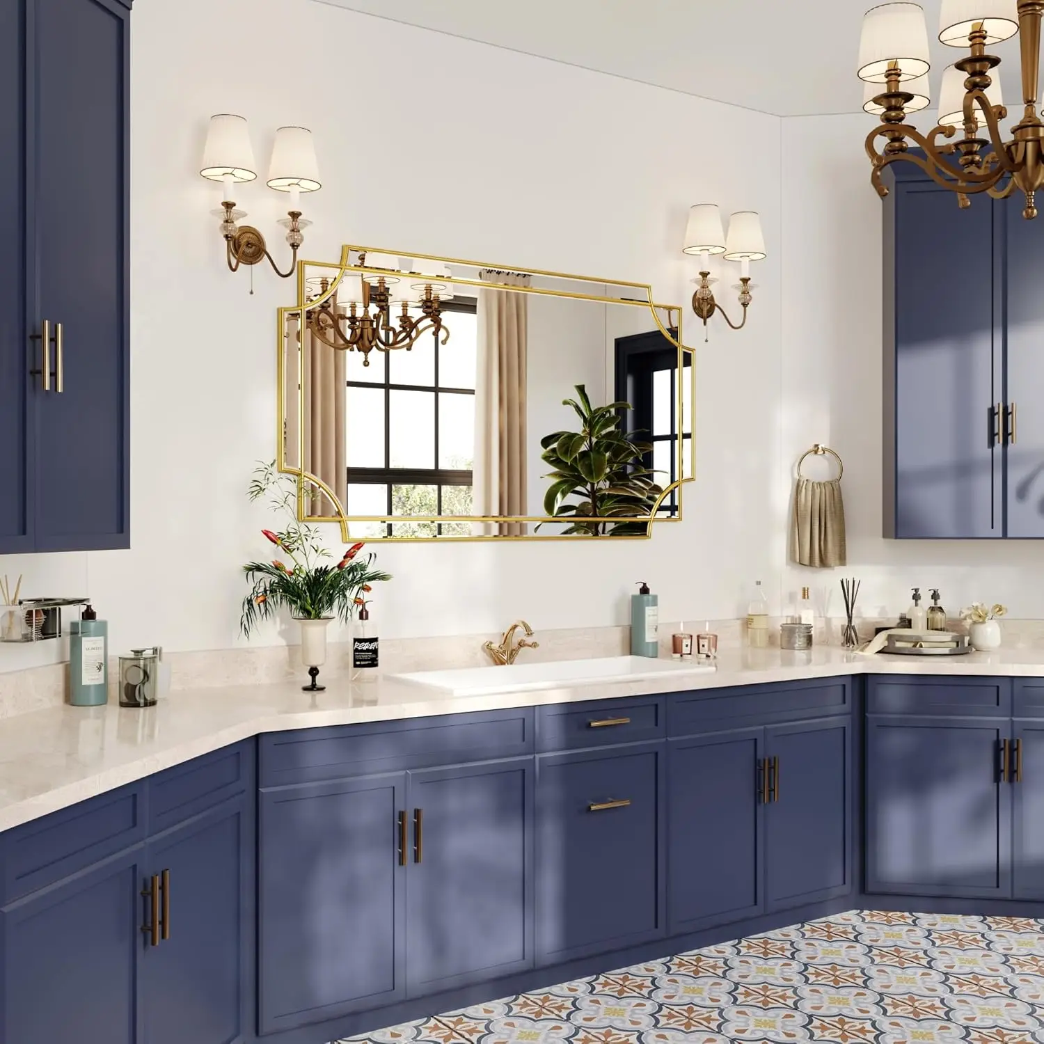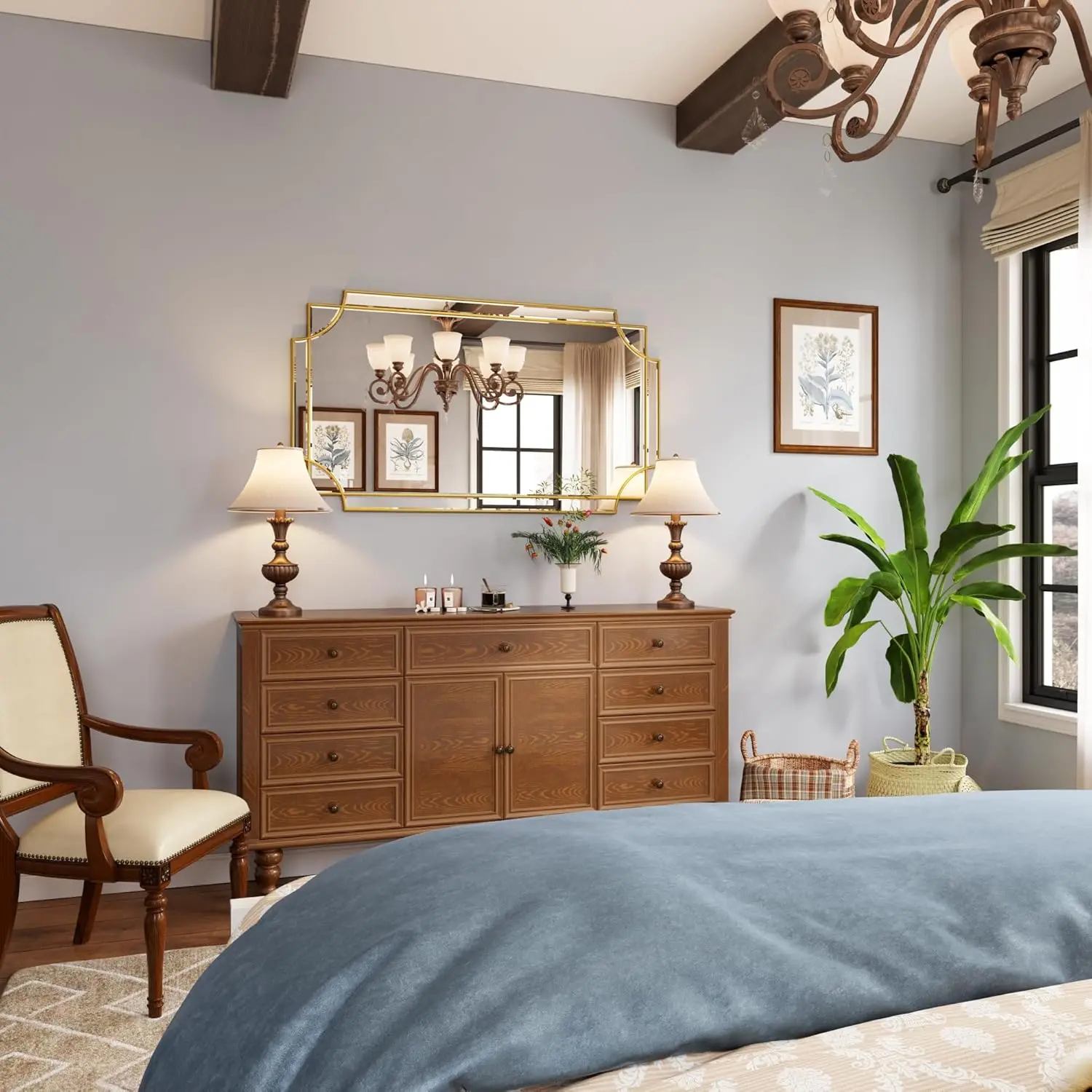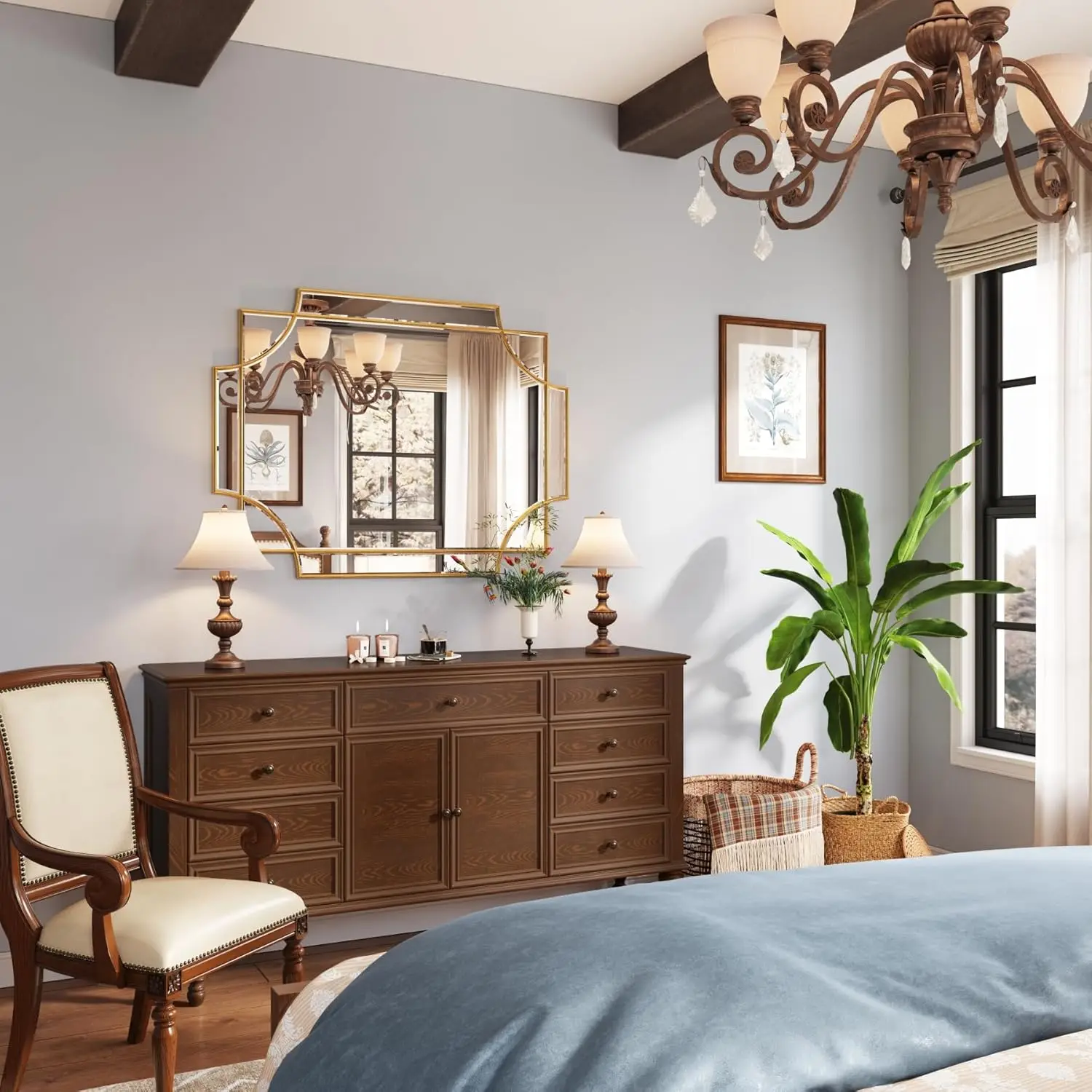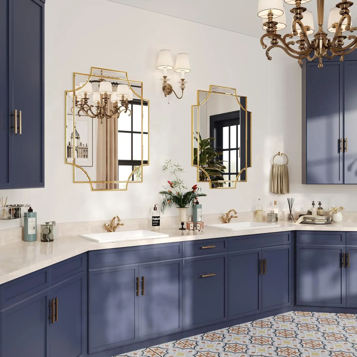 - UNTIQUE DESIGN. If your want some intricacies/interest to the pattern – not just a simple round or rectangle, this mirror will definitely be your perfect choice. Its sophisticated cutout corner accents along the inner and outer edges of the frame complete the look with added decorative detail. It will be a beautiful addition to any wall and an essential element in your home decor.