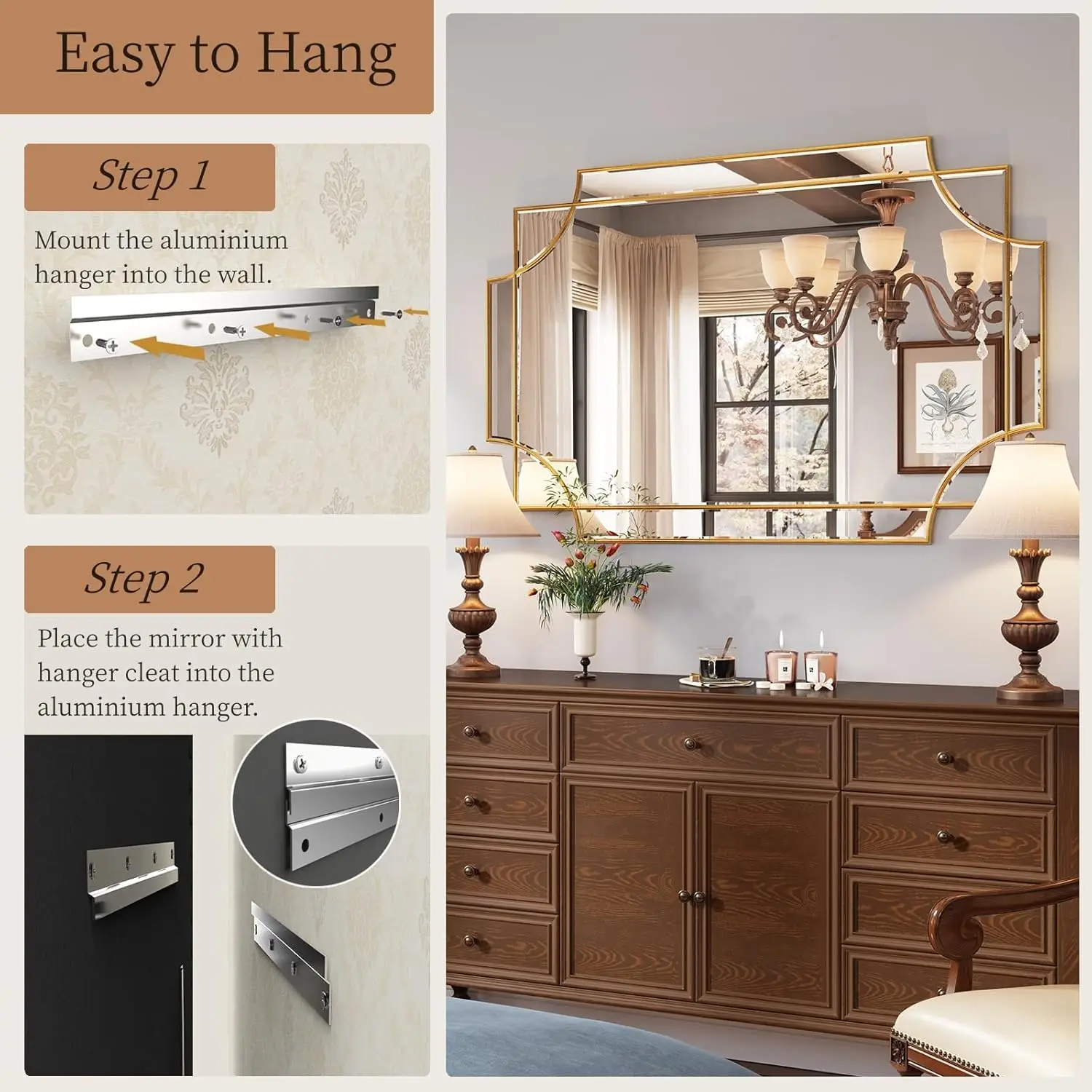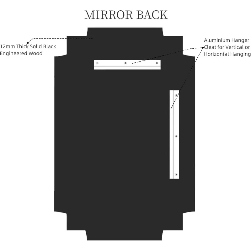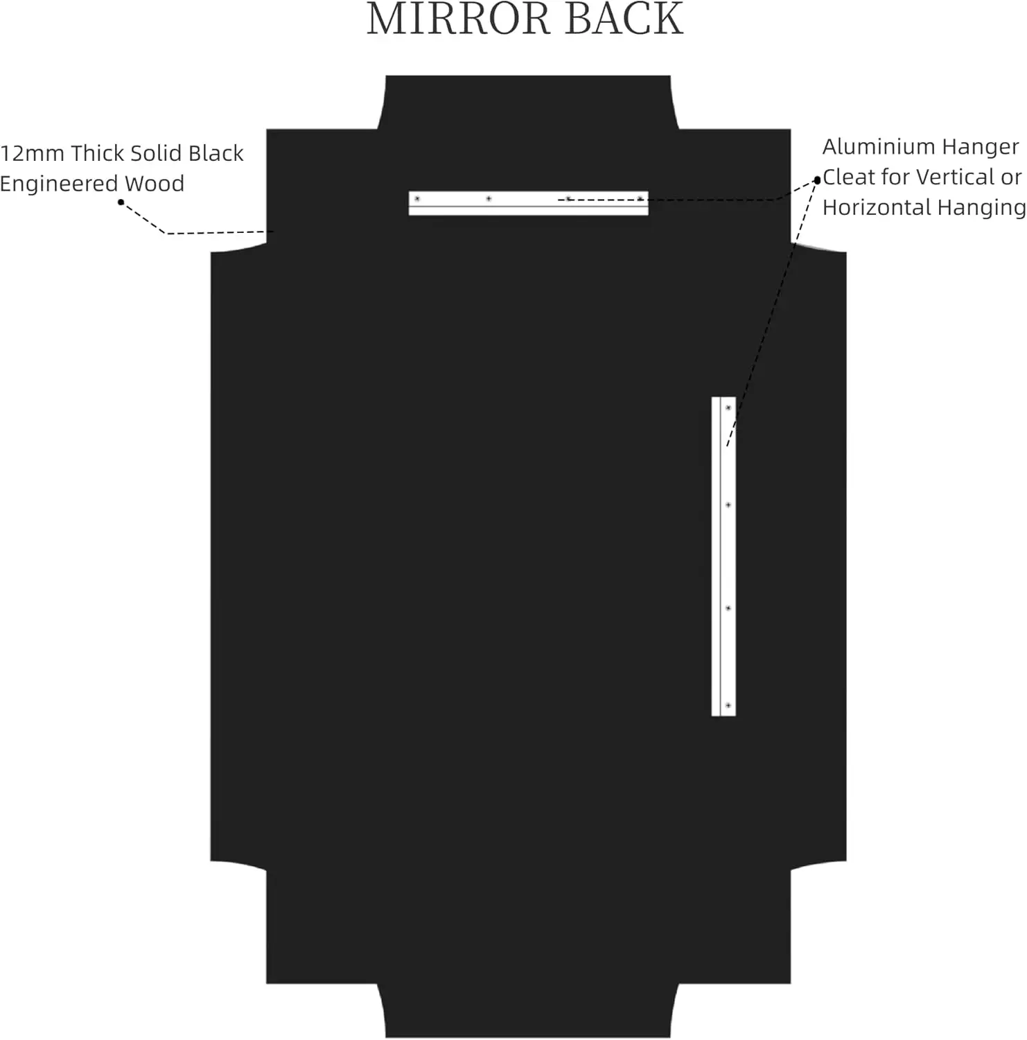 - EASY TO HANG. French cleat is used to make the mirror very easy to hang on the wall. A strong and sturdy hanger cleat is already fixed on the mirror back. You just need to mount another aluminium hanger into the wall, and you can easily choose to hang your mirror vertically or horizontally. The package also includes 2 flathead wood screws with plastic anchors. It will take you no more than 10 minutes to finish the whole installation.