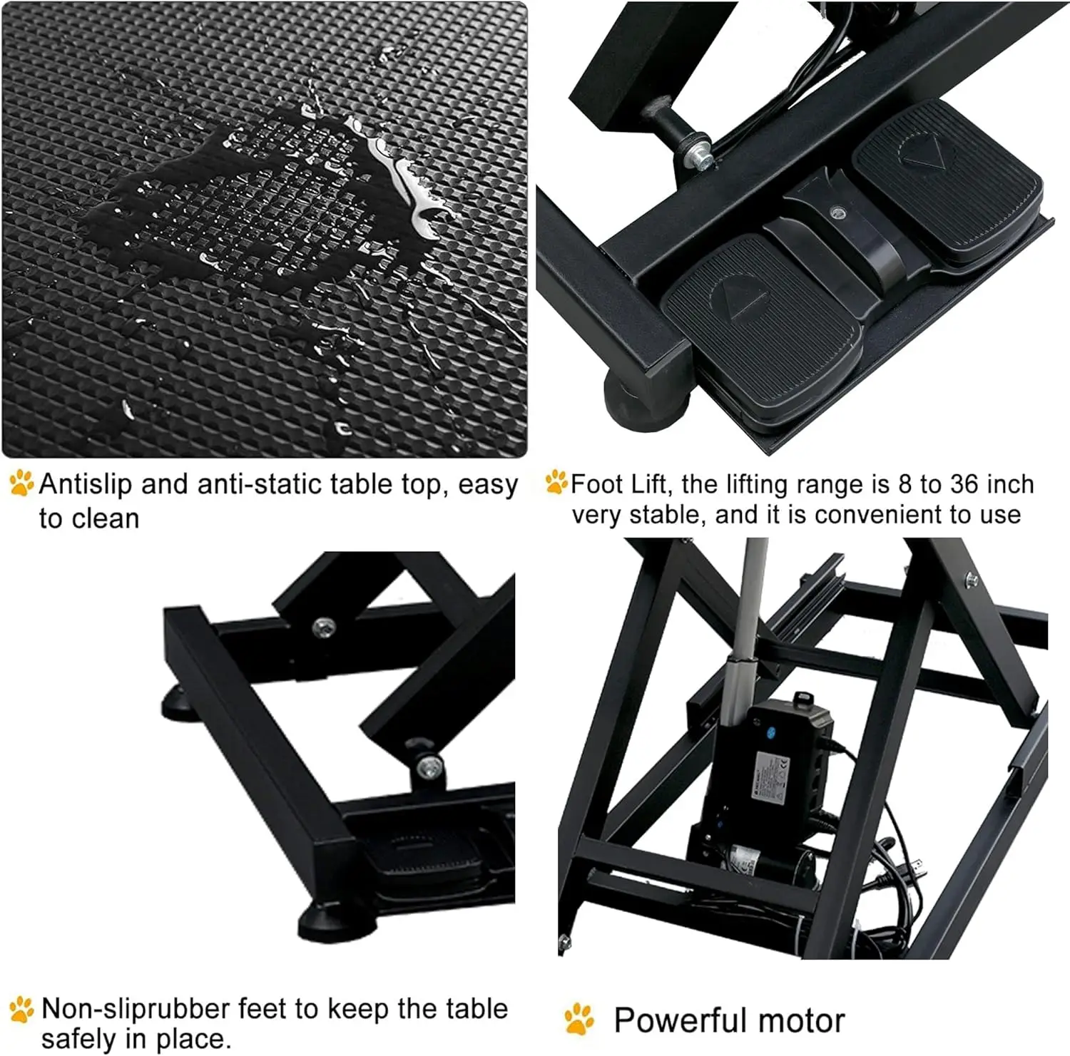 • [Large size & Easy to lift]: Table Size: 50 “L x 26” W, suitable for all kinds of small and medium-sized pets, such as cats, rabbits, poodles, Chenery, and other dogs. The table can be raised from a short height of 8 inches to an amazing 36 inches in a few seconds for different heights groomers and dogs that like jumping on it.
