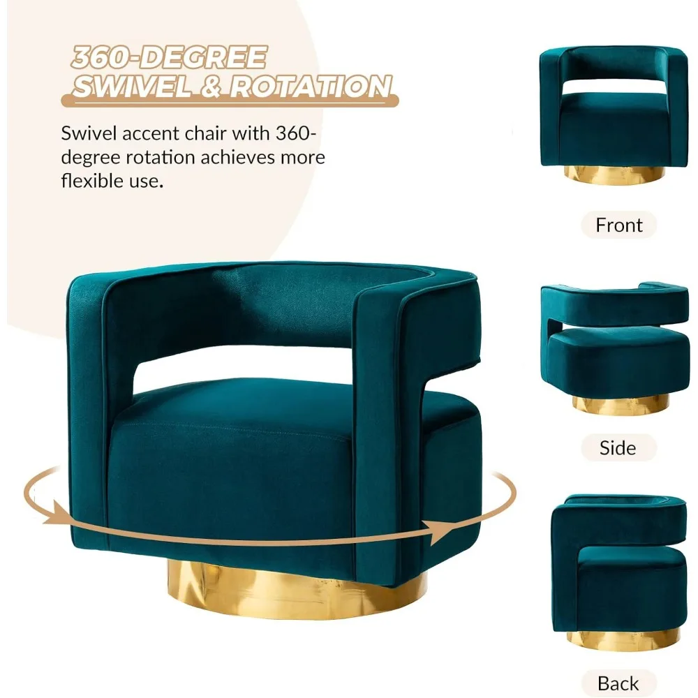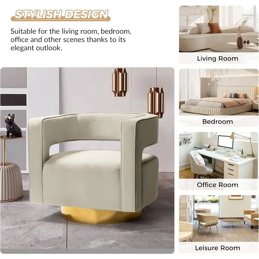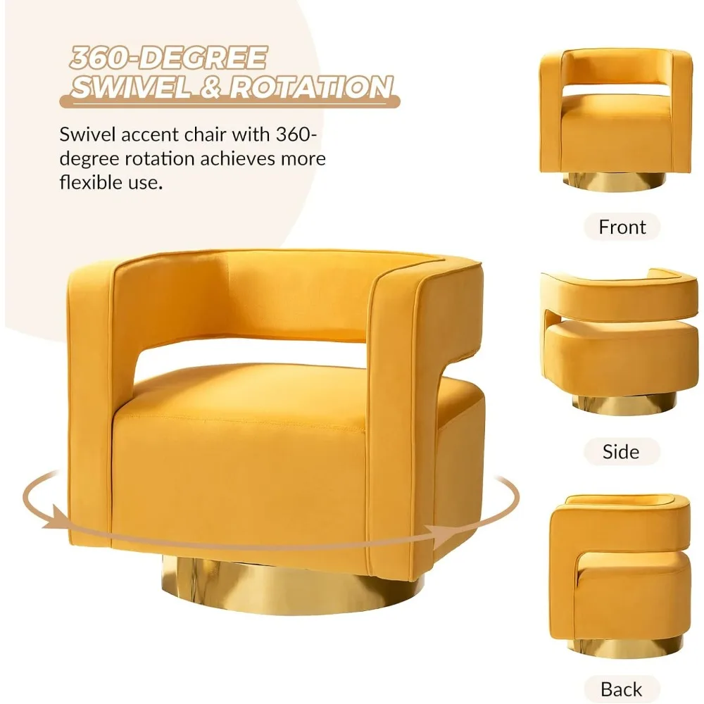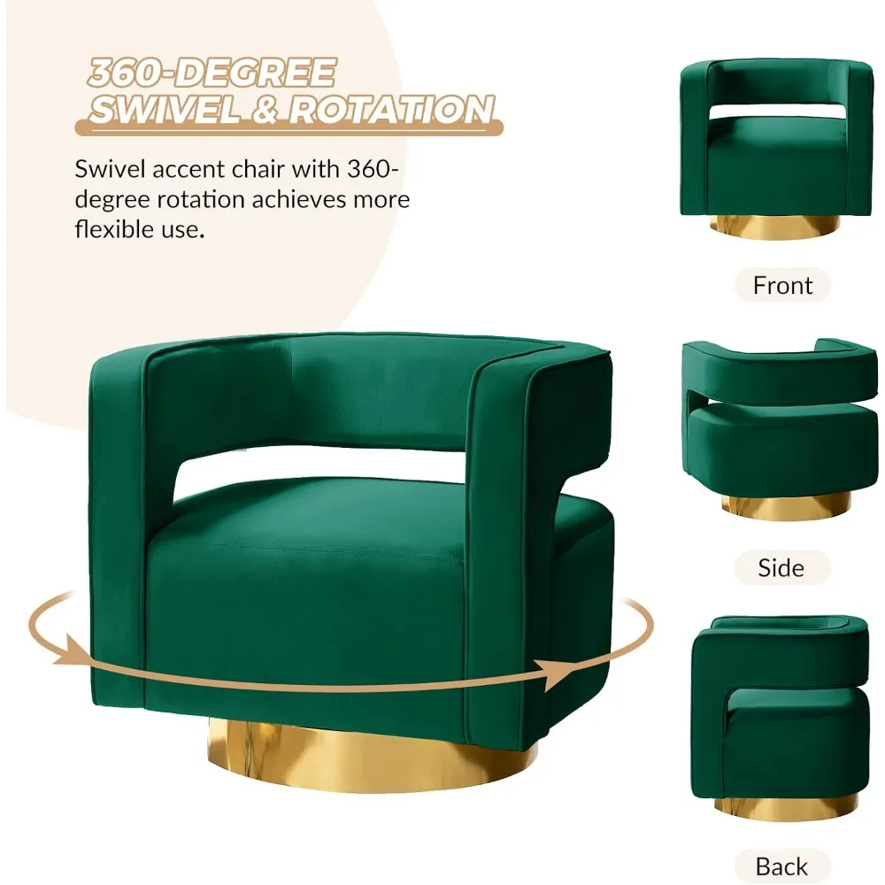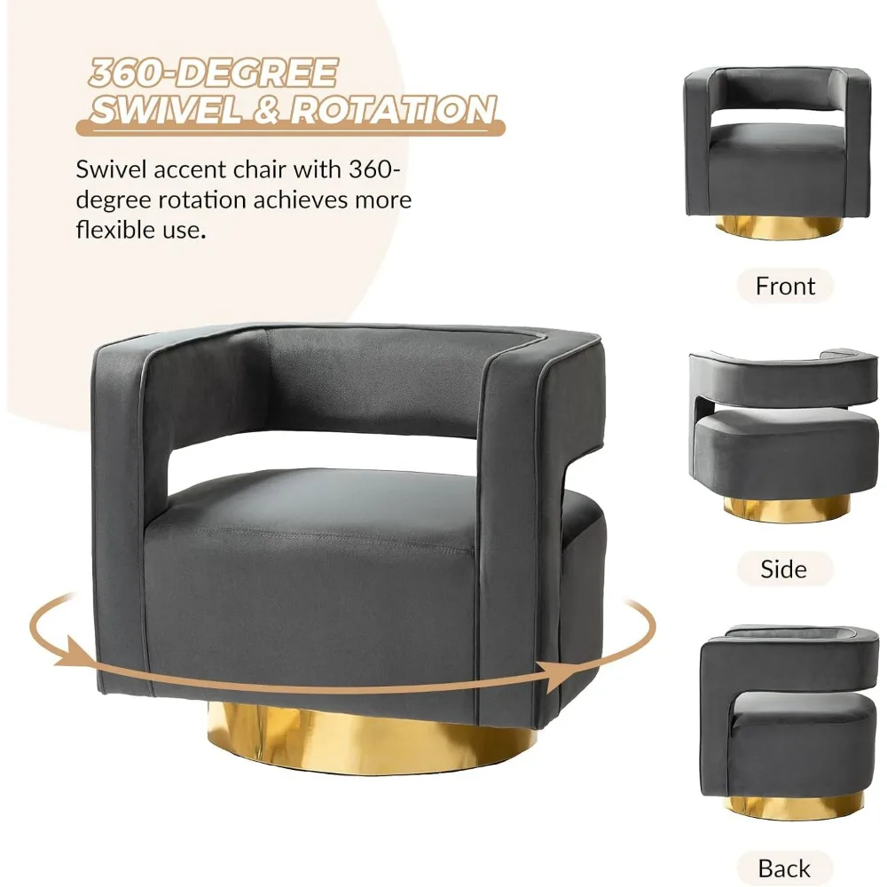 - ?【Contemporary & Classic style】This 3D barrel swivel chair comes with an elegant appearance, and the unique curved open back matches with a gold metal swivel base, This comfy addition to your living space also provides an elegant, inviting decor.