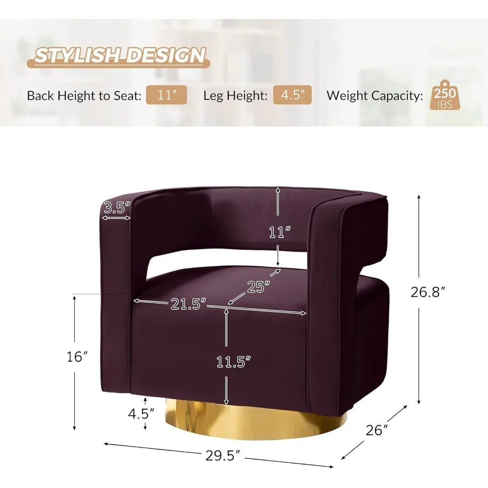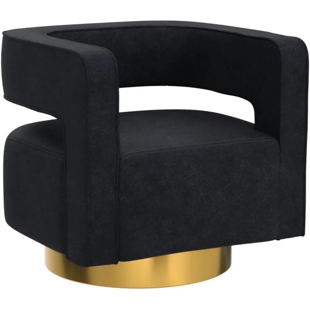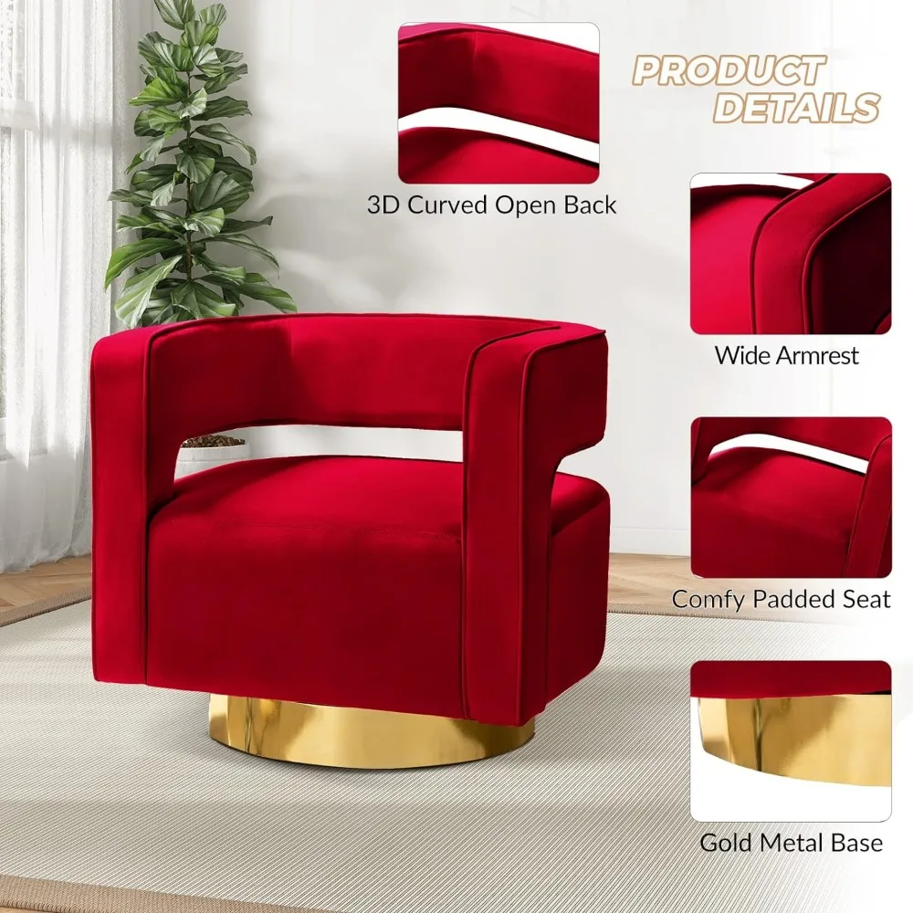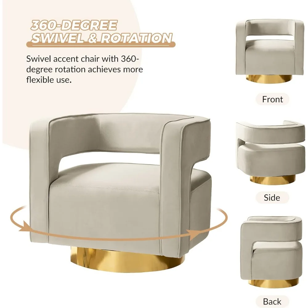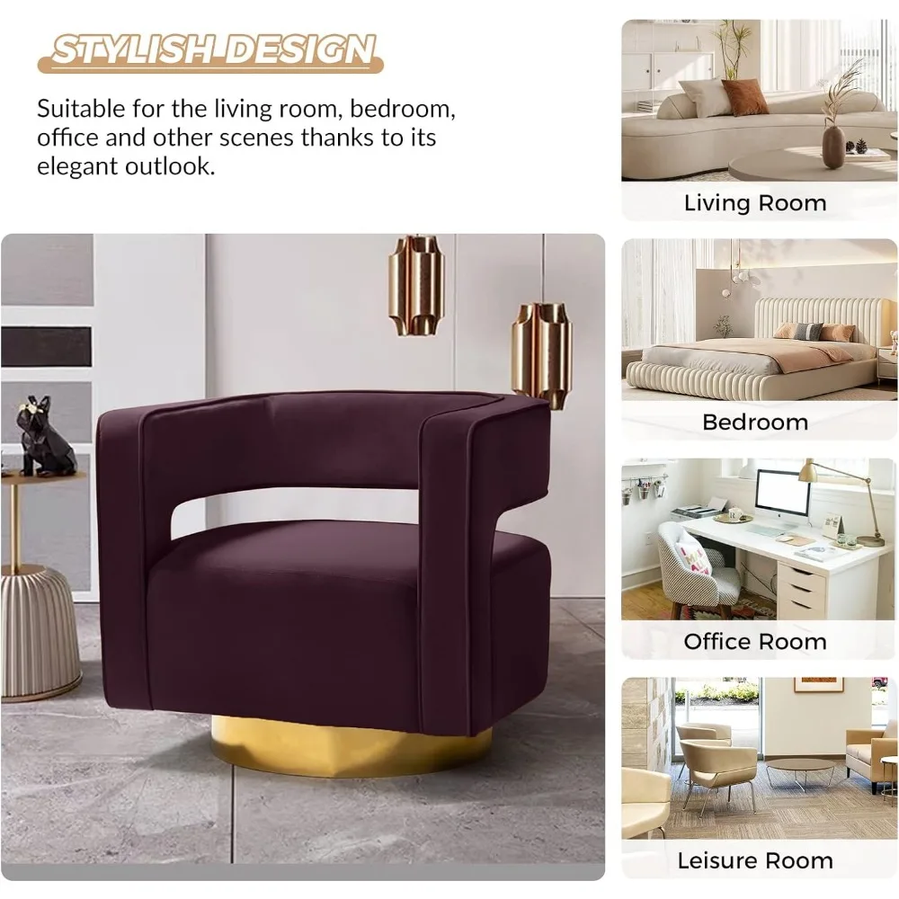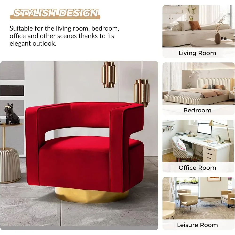 - ?【Contemporary & Classic style】This 3D barrel swivel chair comes with an elegant appearance, and the unique curved open back matches with a gold metal swivel base, This comfy addition to your living space also provides an elegant, inviting decor.