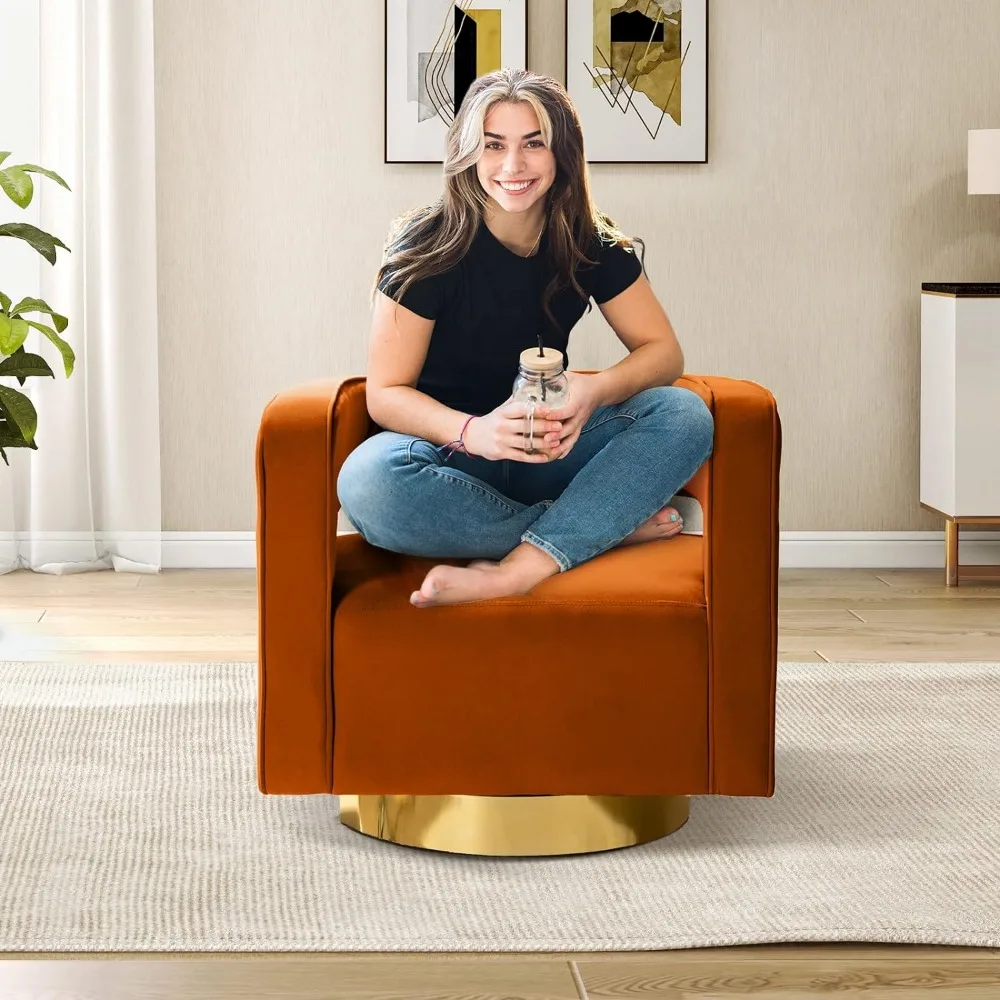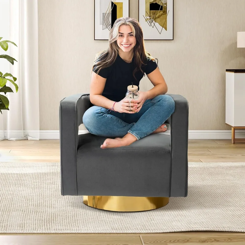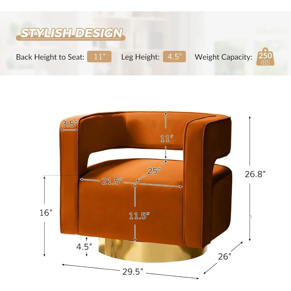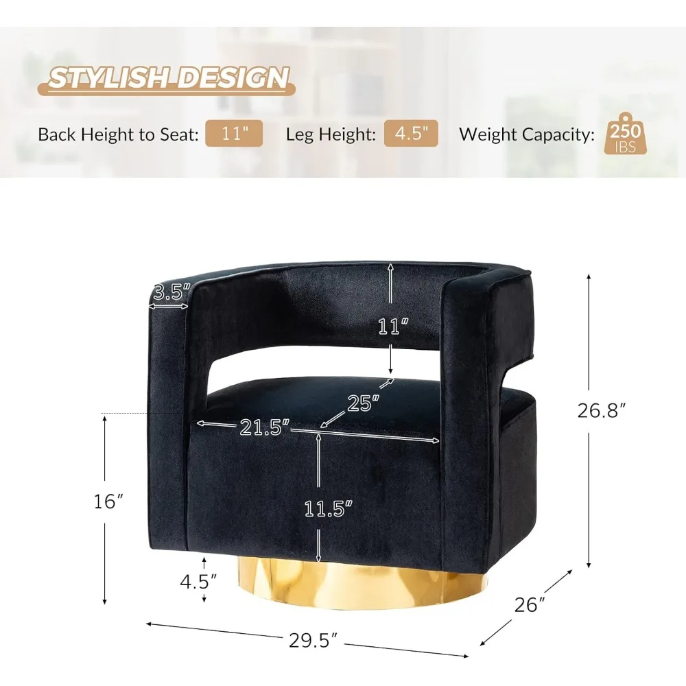 - ?【360 Degree Swiveling Base】 Uniquely designed living room chair features a gold round swivel base that makes 360-degree swivel effortless. Weight Capacity:250lb,Seat size:21.5″Wx25″Dx16″H.