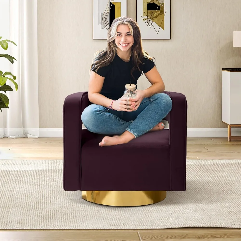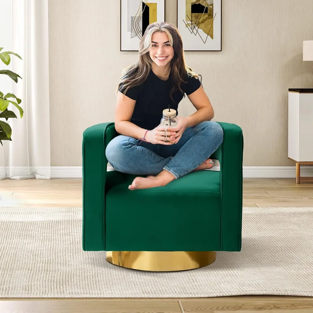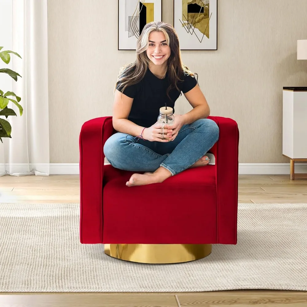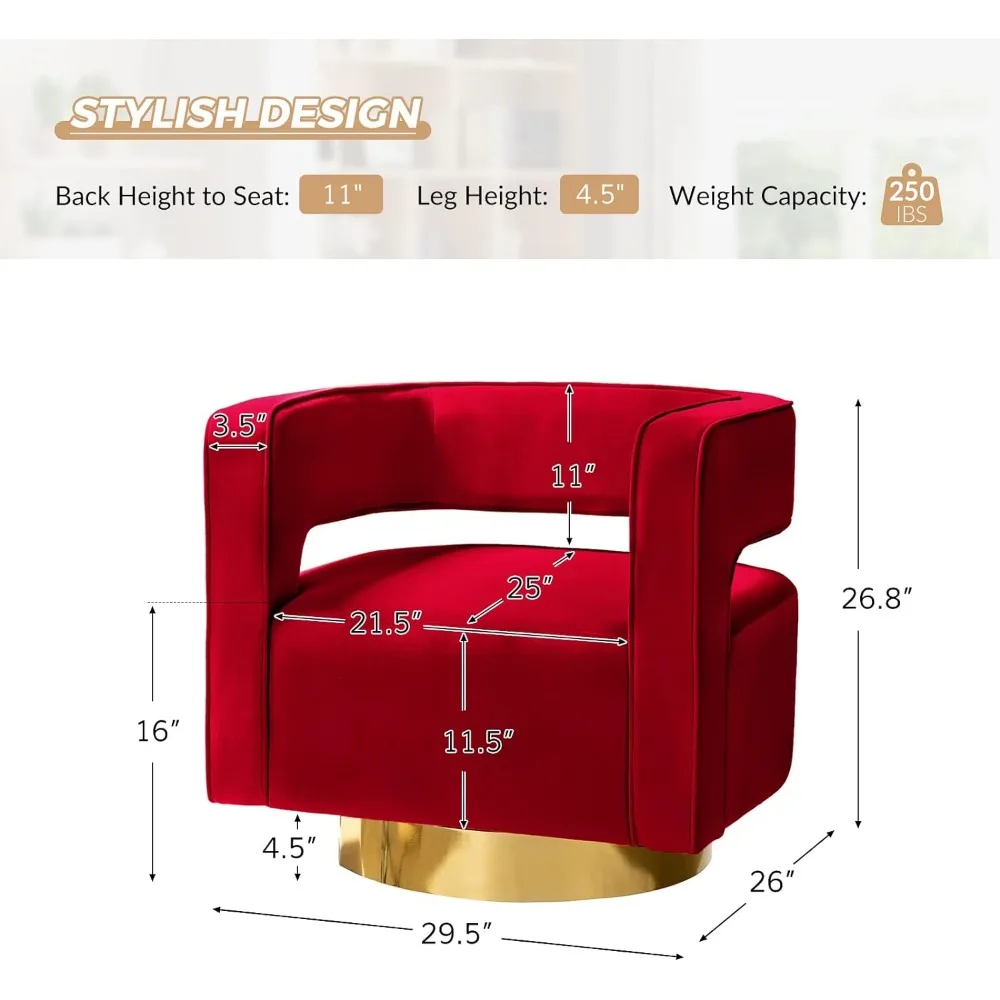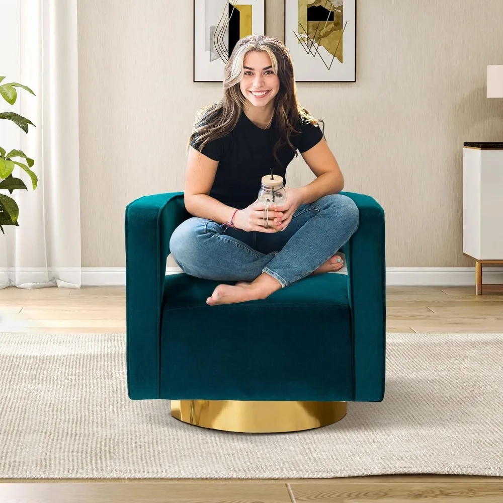 - ?【360 Degree Swiveling Base】 Uniquely designed living room chair features a gold round swivel base that makes 360-degree swivel effortless. Weight Capacity:250lb,Seat size:21.5″Wx25″Dx16″H.