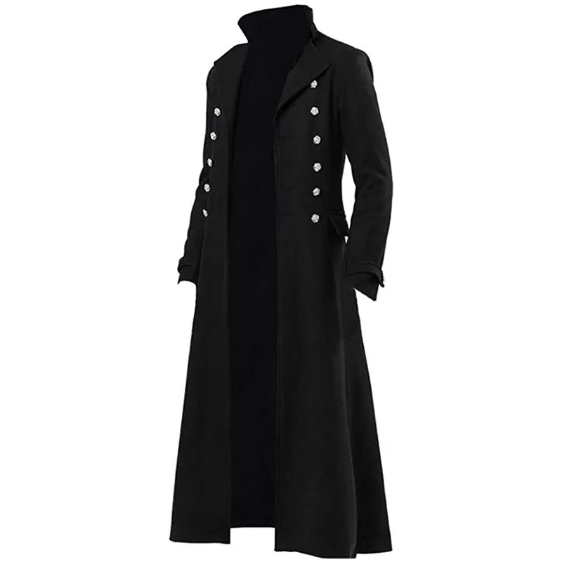Men Vintage Medieval Costumes Steampunk Gothic Black Long Jacket Coat Vampire Cosplay Pirate Halloween Outfit Men’s Trenchcoat