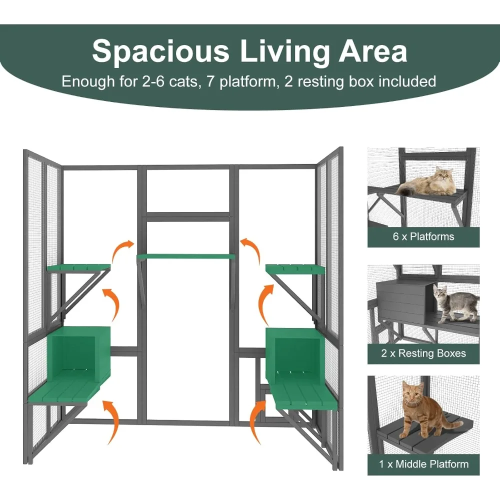 - 【Connect to Pet Door and Cat Tunnel】The cat cage measures 63″ x 32″ x 72″ (L x W x H), with the back cat door you can connect with indoor pet door, and the front door you can connect with cat tunnel.