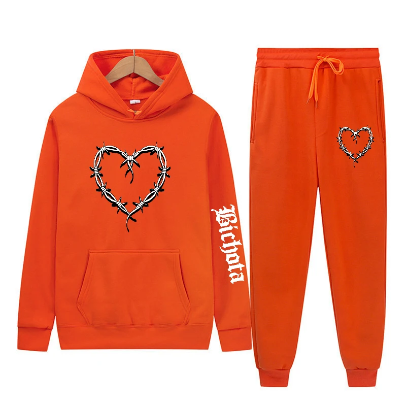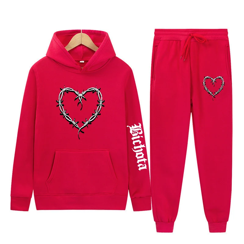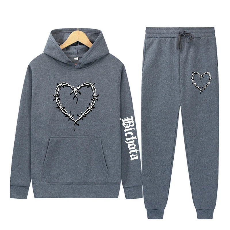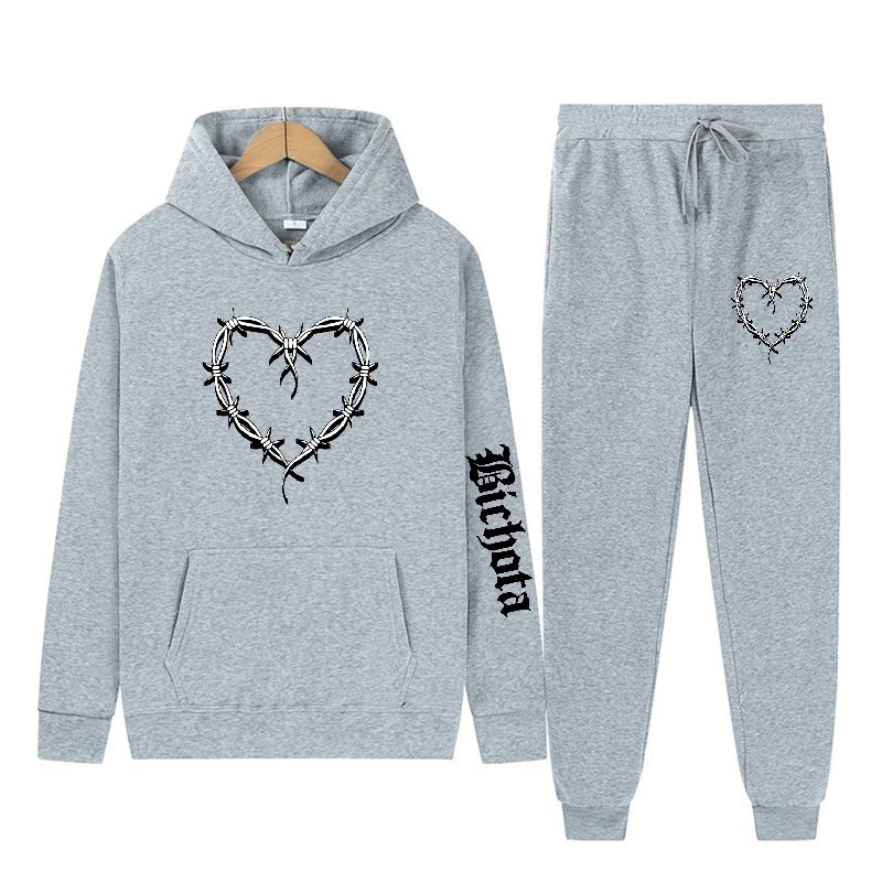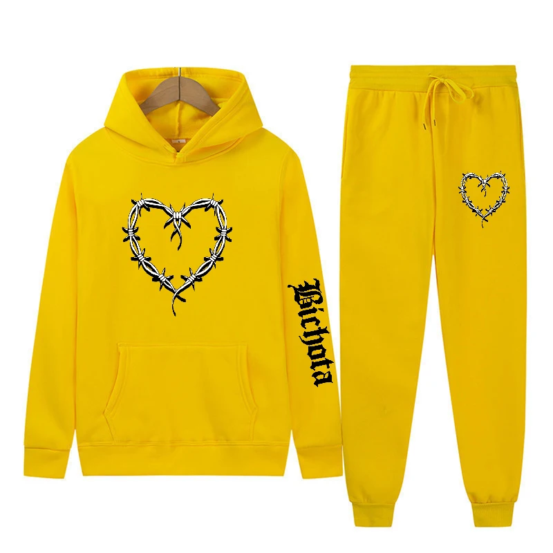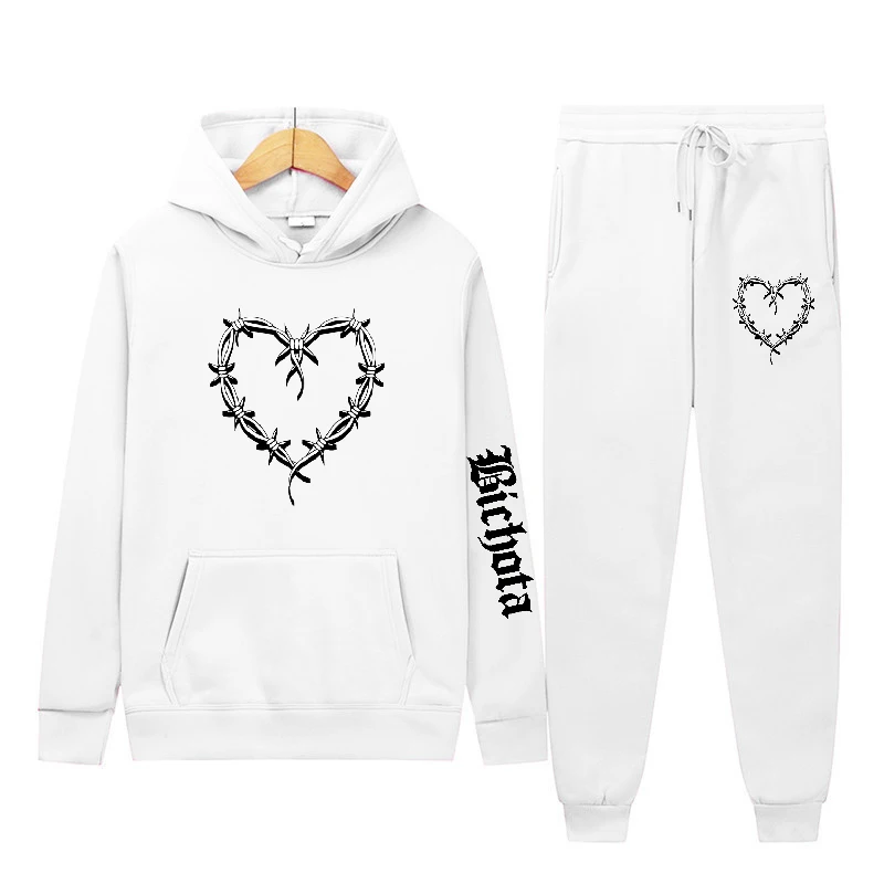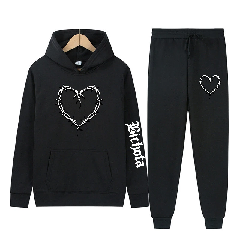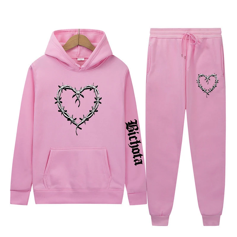 Rapper Karol G Bichota Hoodies + Pants 2pc Set Men Fashion Long Sleeve Sweatshirts Women Casual Harajuku Pullover Sportwear Suit