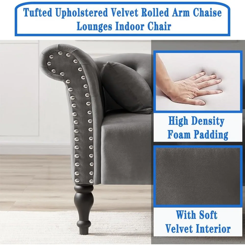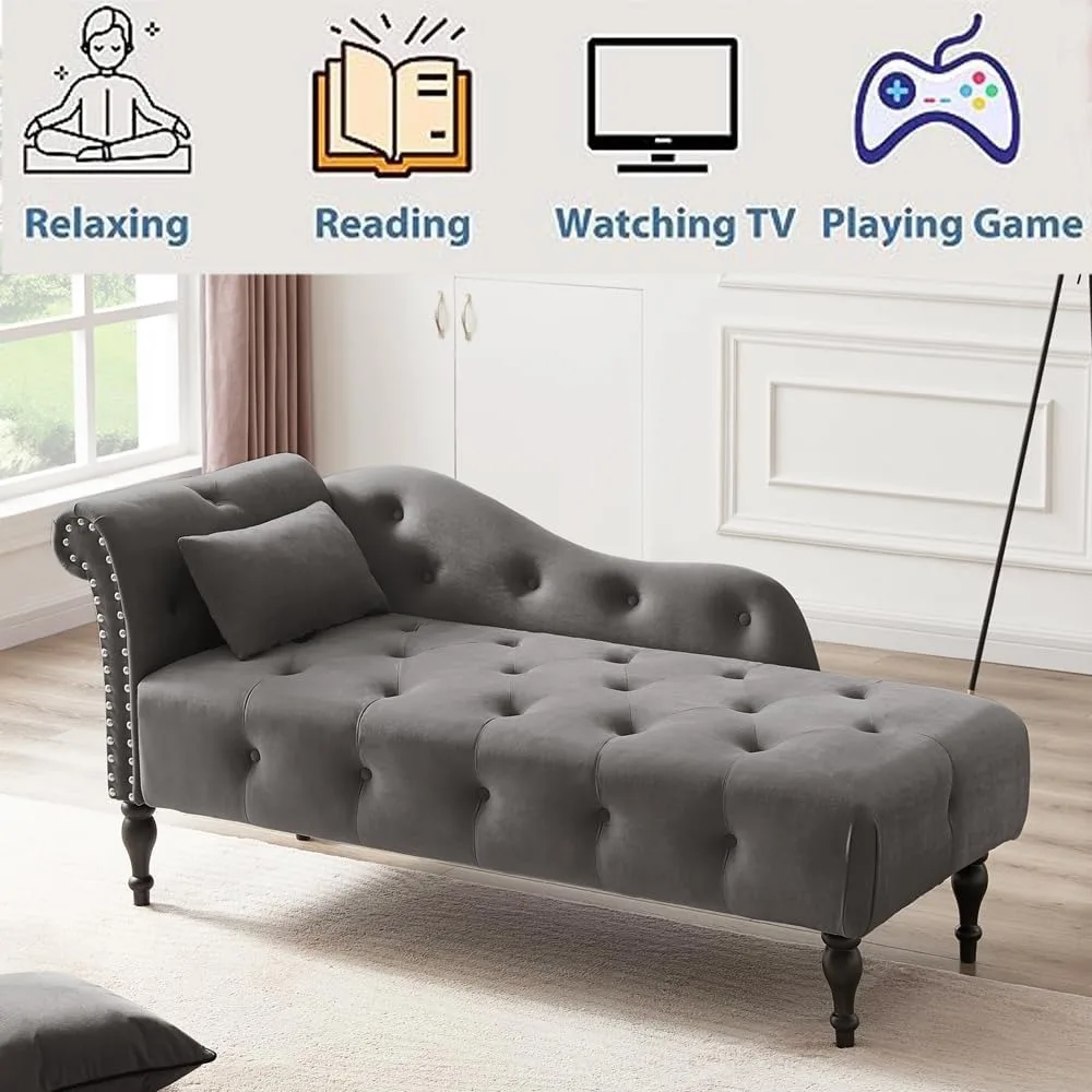 - 【Stylish Design Style】Soft velvet upholstery with nailhead trim detail and classic legs Elegant and classic chaise lounge chair for office or living room This is the perfect piece of furniture for everyone.