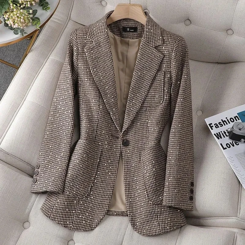 Women Lattice Vintage Blazers Shorts Two-piece Suit 2023 New Spring Autumn High Waist Mini Casual Shorts Two Piece Set for Women