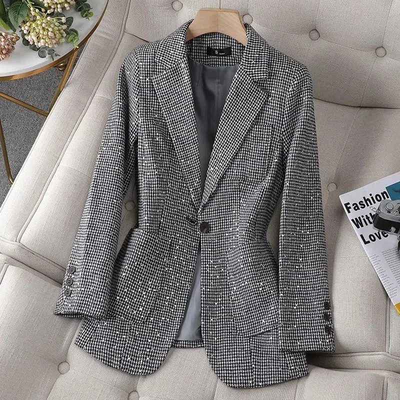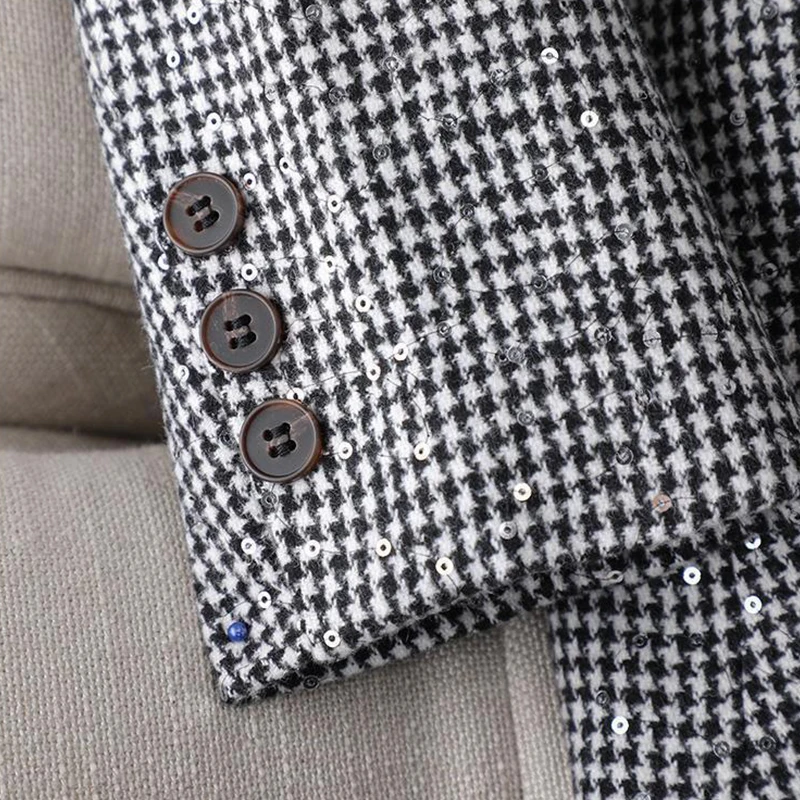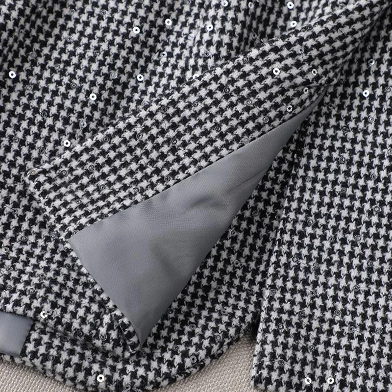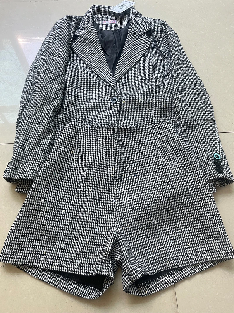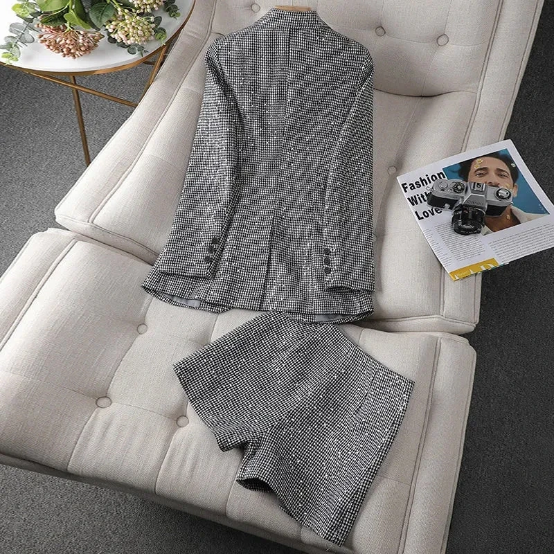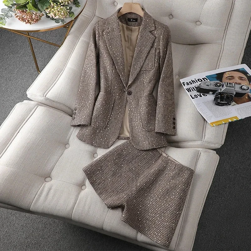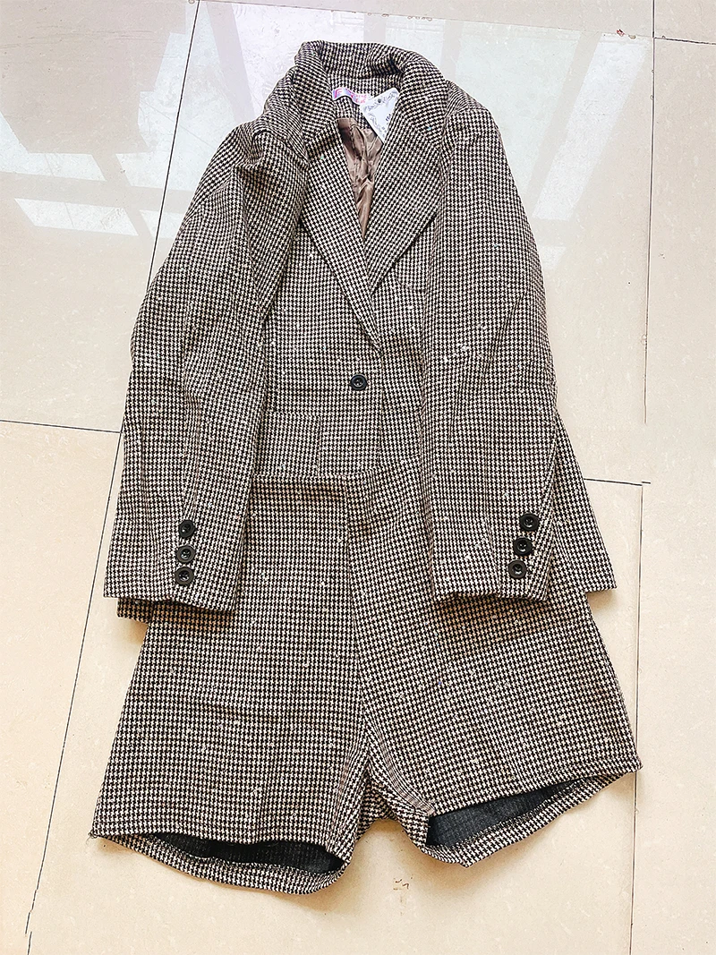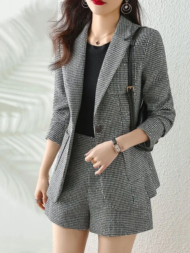 Women Lattice Vintage Blazers Shorts Two-piece Suit 2023 New Spring Autumn High Waist Mini Casual Shorts Two Piece Set for Women