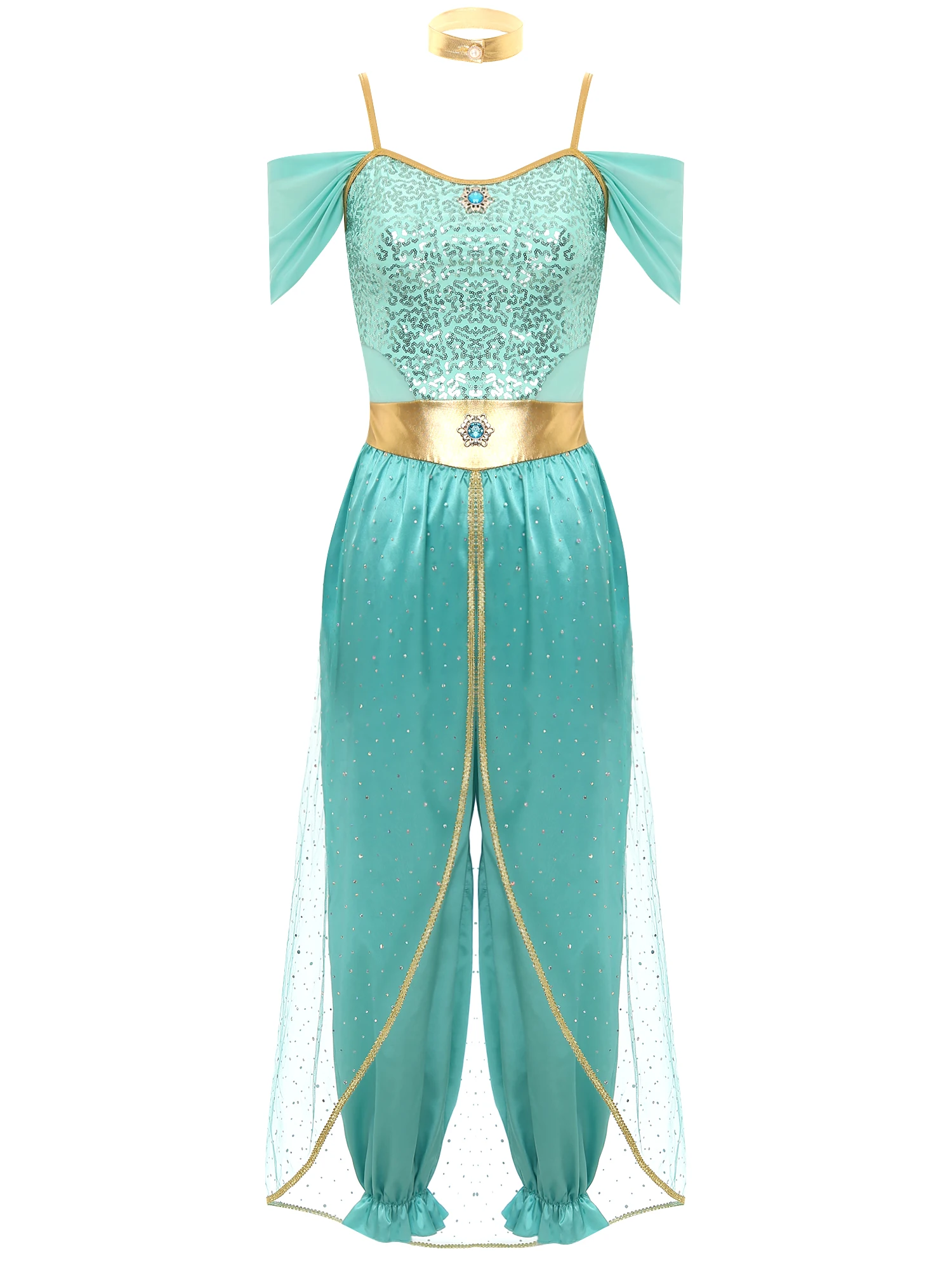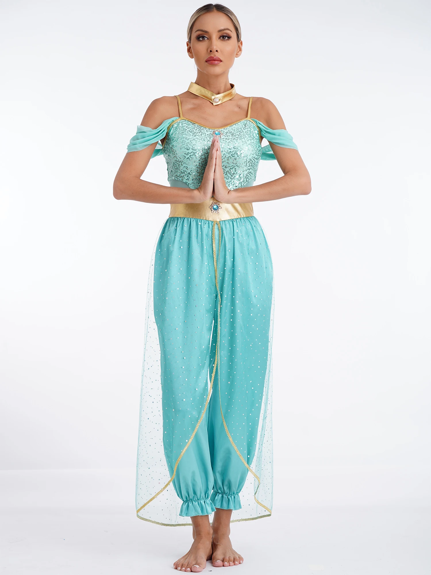 Dressing as the heroine of a fairy tale, Arabian princess or queen, also can be used as dancewear for belly dance. It’s very fairytale and exotic costume.